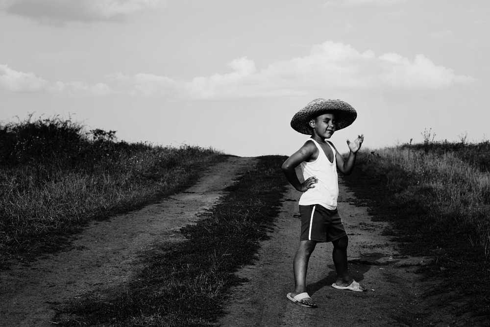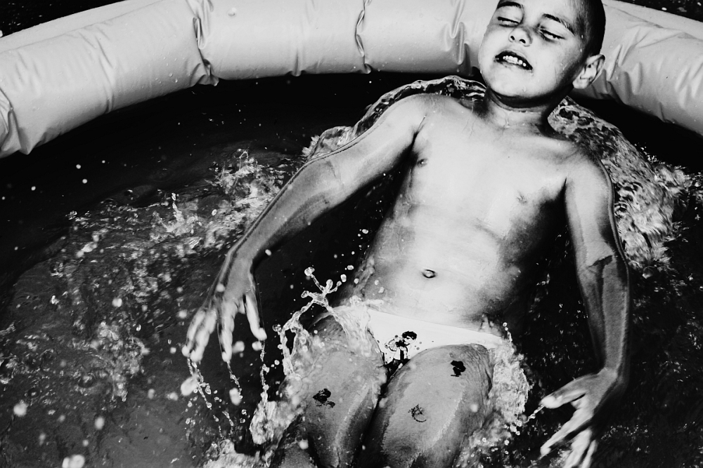 Confronting the end of childhood as I know it, followed by the beginning of my so-called “adulthoodâ€, has been much easier with my 5-year-old cousin, Felix, around. He is growing up in a small village in Romania, which many generations from my family have called home throughout their lives. Felix is developing himself in a traditional spirit, playing in the sand instead of using a tablet, being happy just by swimming in a small supermarket pool, riding the bike and gazing at the Milky Way, undisrupted by car lights and drunk lamps. At 19-years-old I discovered that there is a way back from gradually becoming an adult and losing our raw, unaltered spirit. I decided to join Felix in his games, where I would be the photographer, the story-teller, and he would act like various characters – a blonde little girl, a dog between dogs, a self-proclaimed cowboy – free from any kind of constraints. I therefore entered a new world, recalling my own childhood in an electronic-poor environment that offered me time to breathe and search for my true identity. The courtyard and its surroundings are now my playground again, the place where everything is possible once the sun rises and swallows up the fear of growing old with its nourishing light.