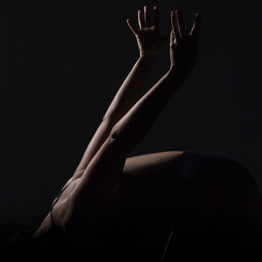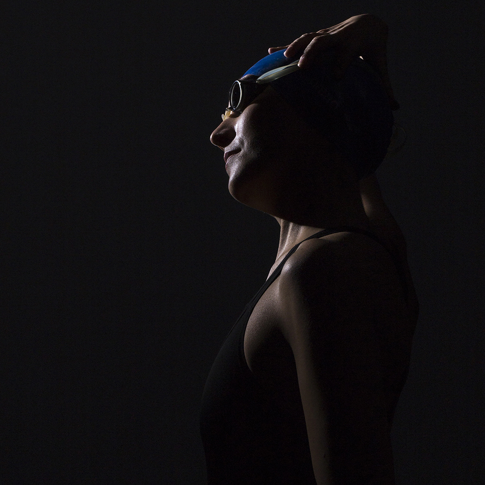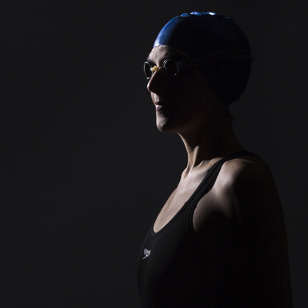 This is a triptych of self portraits talking about my past as an athlete and showing the moments preceding a swimming competition. I used to follow a precise chain of rituals in order to find concentration and get ready to win. There were only myself and my goal, everything around me disappeared in the complete darkness: no noise, no breath, nothing could distract my attention.