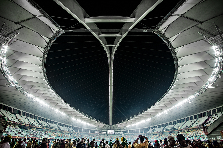 During the World Cup Soccer FIFA in 2010, was for 43 days in South Africa, and the end of the match between Brazil and Portugal in Durban at Moses Mabhida stadium, I could capture the energy, the colors, the lights and the beautiful heart shape formed by the architecture of the stadium.