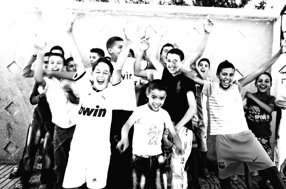 As an European I'm always surprised to see so many kids running freely in the streets of Arabic countries without someone to watch them. They're free to play all together and follow their own life far from the adults. Streets there are always full of laughs and noises of these kids playing all around. This work is a testimony to all this joy and insouciance.
