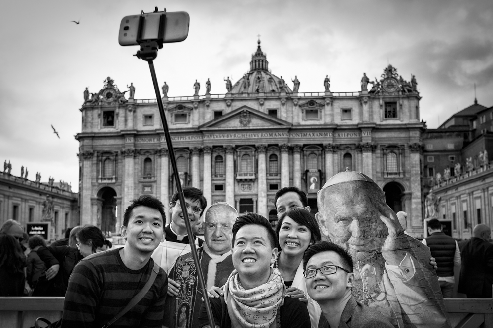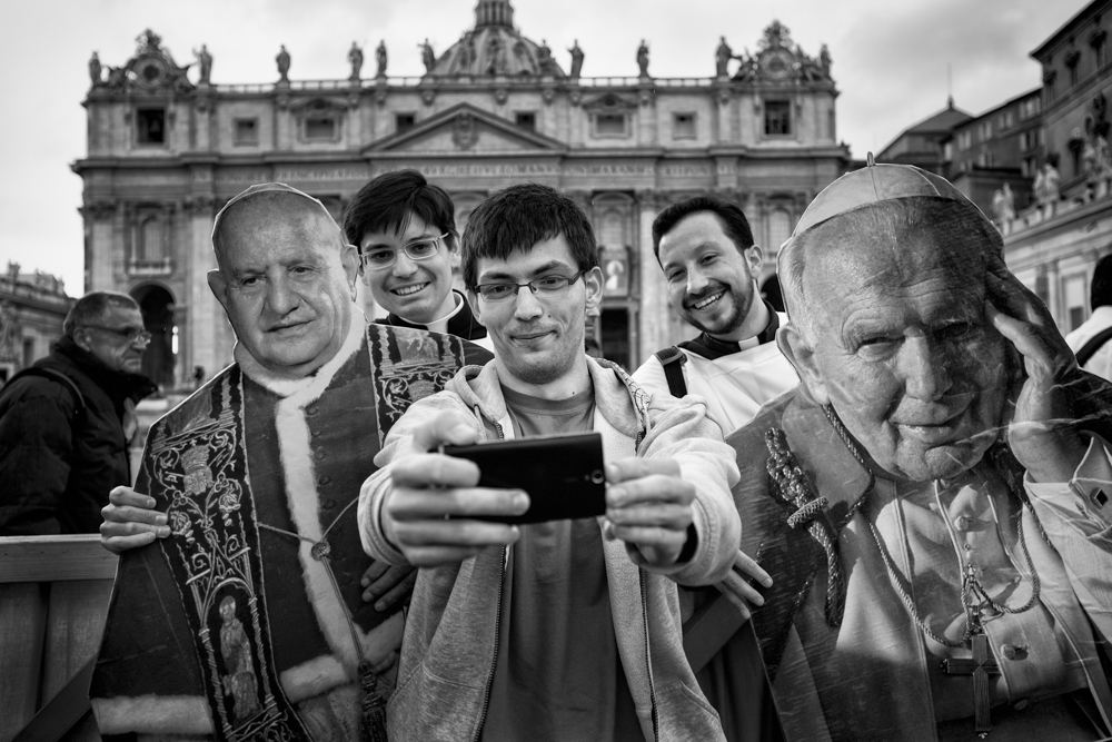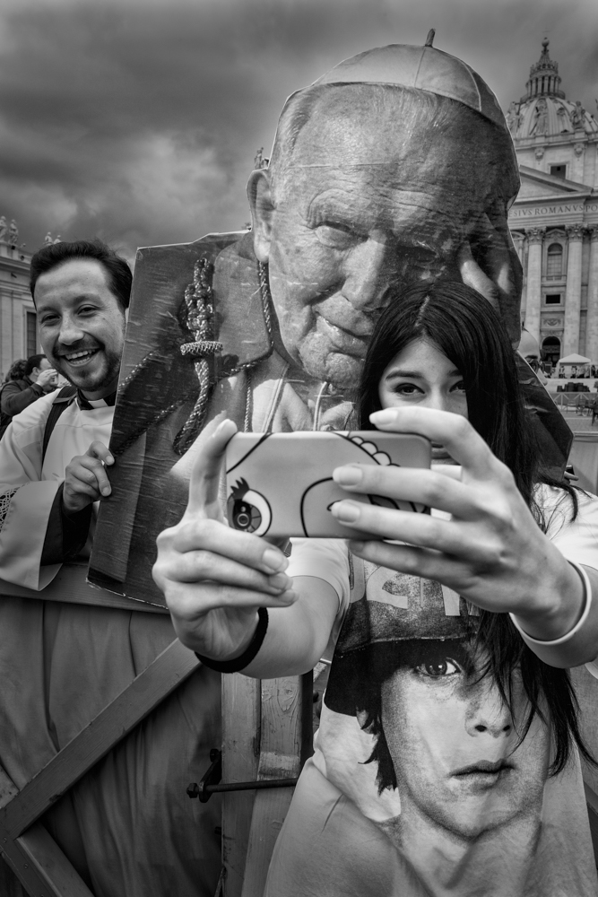 In the digital social networks' era is crucial to appear cool. The image we want to give to others has become an obsession. At all costs we must look not who we really are, but who we want to be. Even events such as sanctification of the popes Giovanni Paolo II and Giovanni XXIII risk being totally belittled by the desire to appear of spectators that becoming the subjects of the event sharing their perfect photographed image