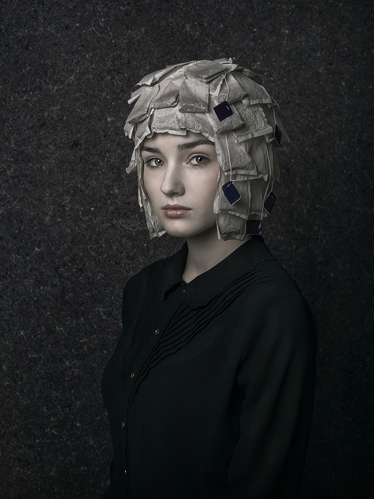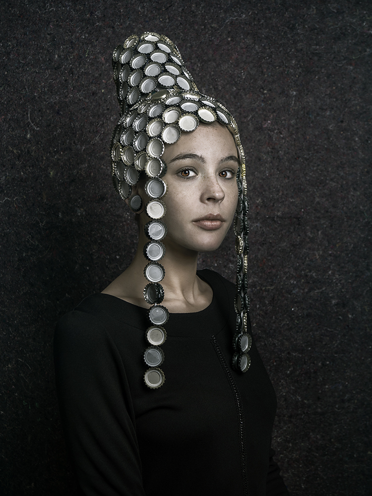 This series is an ongoing project in which unusual materials have been used in order to create hairstyles and looks with a twist. We are surrounded by so many things with supposedly established purpose. In this series I want to challenge such regularities and present new usages for some of those materials. We are exposed to an abundance of banal objects on a daily base. They are quite common on its own, or in small quantities. If there is a higher amount of those objects, suddenly they can be combined to something new, that is more and bigger than its parts. The initial shape and usage become a lesser concern because a new form will emerge. In this series I use exactly this kind of common objects to simulate hair cuts and stylings.