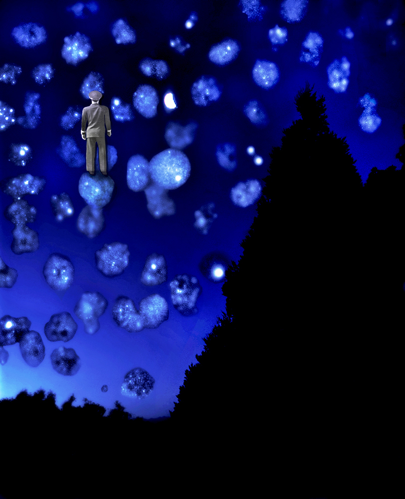 “Star Gazers†addresses the things that are hard to think about (i.e. death, mortality, insignificance) through imagination and narrative easy to be confronted with. Fiction and awe weave together antique imagery, scientific imaging, and medium format film photography to tell a farfetched tale that is factually possible. This is a story where worlds can communicate, where past and present can connect, and the cosmos contain meaning.