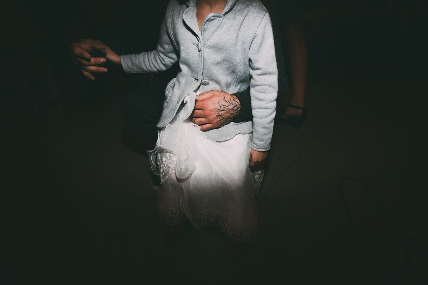 As the years go by, I am still looking for this violent, dark, sexual and creative place The camera allows me to take part in the most private moments. I look for places where masks are worn and removed and something real and honest is revealed to the lens. Surprisingly, the place that allows me the most direct contact is the wedding photography. In the attempt to escape reality I find again these margins of the unresolved.