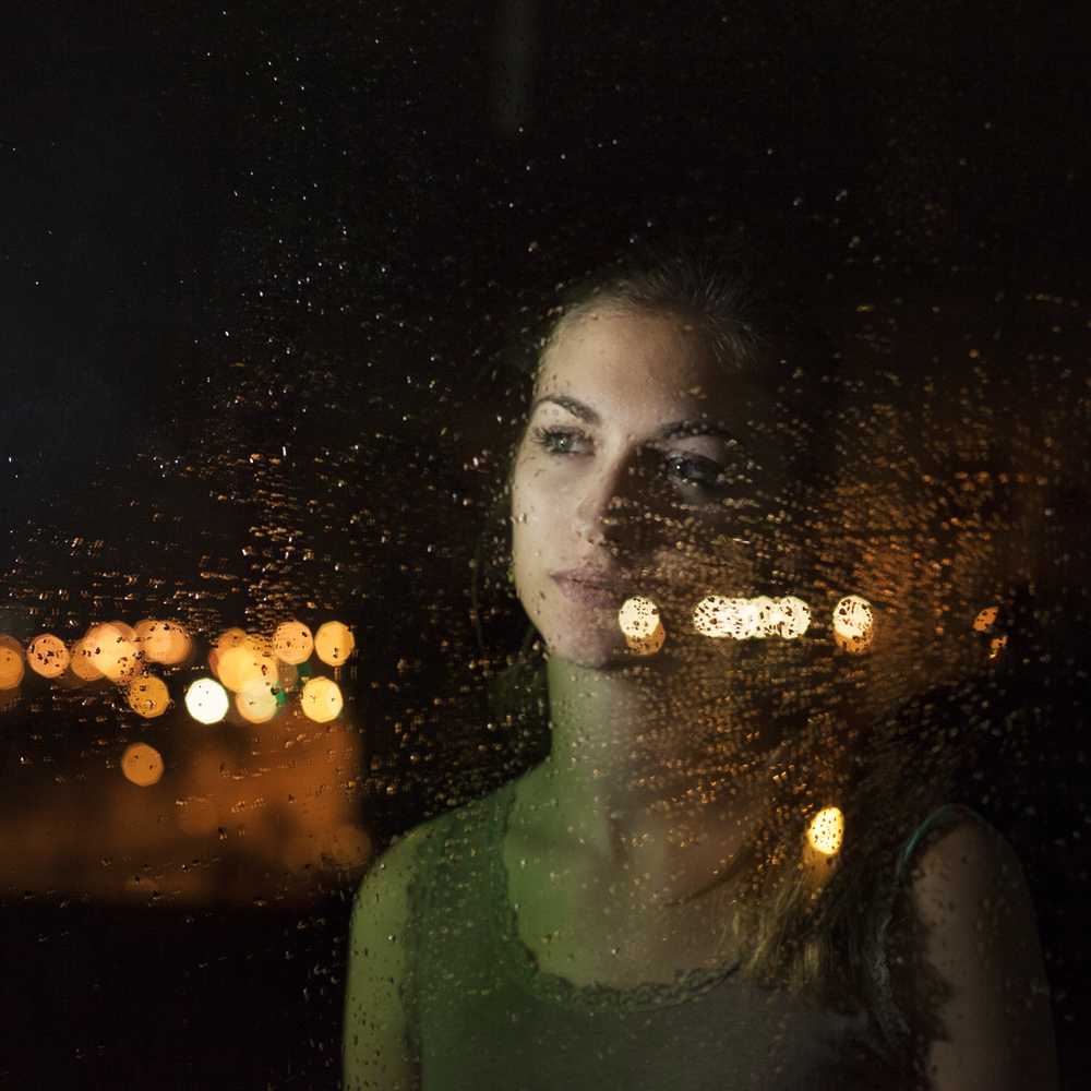 Faded, mysterious, sketchy portraits. Rain and night, like veils, obscure the subject's identity, posing questions. Who are these figures, looking as though they're lost in the void? What are they searching for? Are they spectators, detached, witnessing the same event? Or are they actors, posing, performing with false melancholy? Their souls, shielded by glass, allow for hundred of interpretations. This photography doesn't show or tell, it exists without assumptions or interpretations, leaving the viewers free to create their own stories and their own characters, to imagine beyond the images themselves