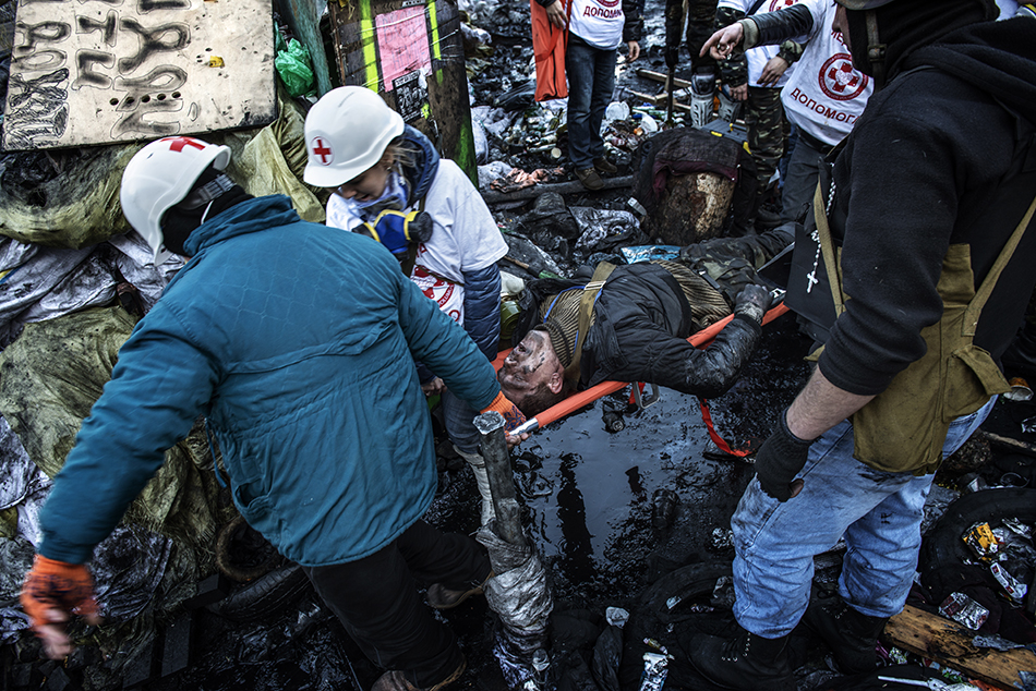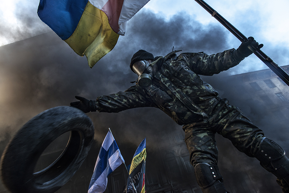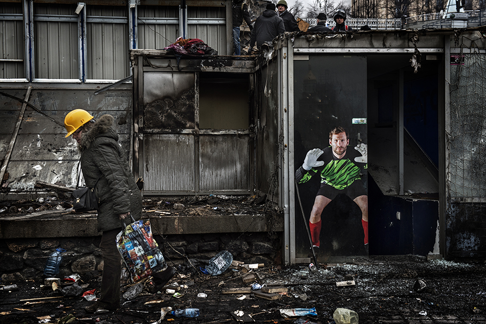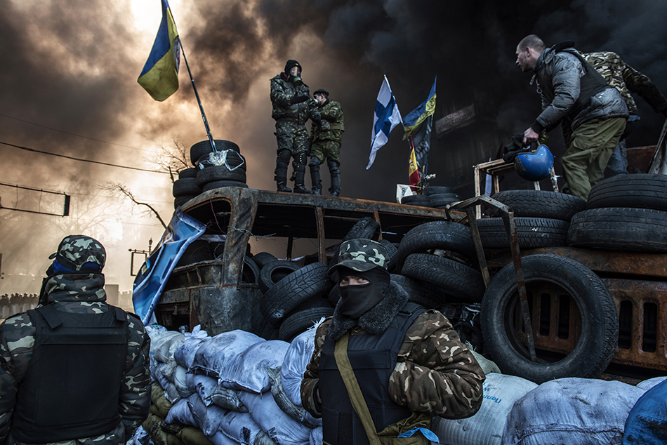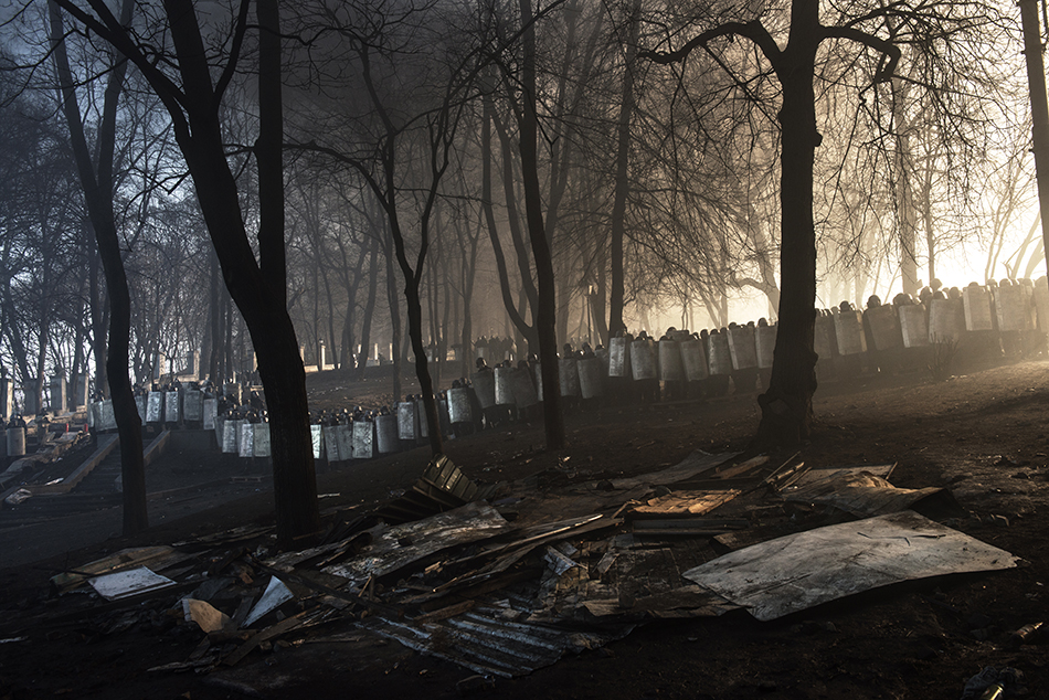 Behind Kiev's Barricades In November 2013, hundreds of thousands of Ukrainian protesters took over Kiev’s Independence Square (Maidan Nezalezhnosti) and a number of important government buildings. Initially, the demonstrators gathered to protest against President Viktor Yanukovych’s decision to pull out of a deal that would have pushed Ukraine into isolation from the rest of Europe. After a brutal police crackdown the dissents grew in size and shifted their focus on toppling a government seen as brutal and corrupt. My photo reportage covers the period from 16th of February 2014 to early March, from the onset of the violent protests to the beginning of the Crimean crisis. Everything was wrapped in a persistent blanket of smoke rising from tyres being burned to prevent the advance of the Ukrainian president's feared Berkut special forces in their tortoise-formations. It was truly a territorial war as both sides fought to gain mere inches of ground around the government buildings . I witnessed the destruction of the barricades by the police and their subsequent rebuilding, higher and stronger than before, by the demonstrators. Tons of debris built up hour after hour in the streets only to be promptly gathered and piled up on the barricades by the thousands of protesters, who swarmed and rallied like ants defending their nest.