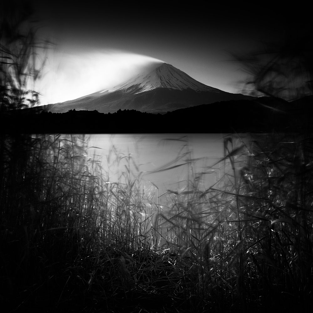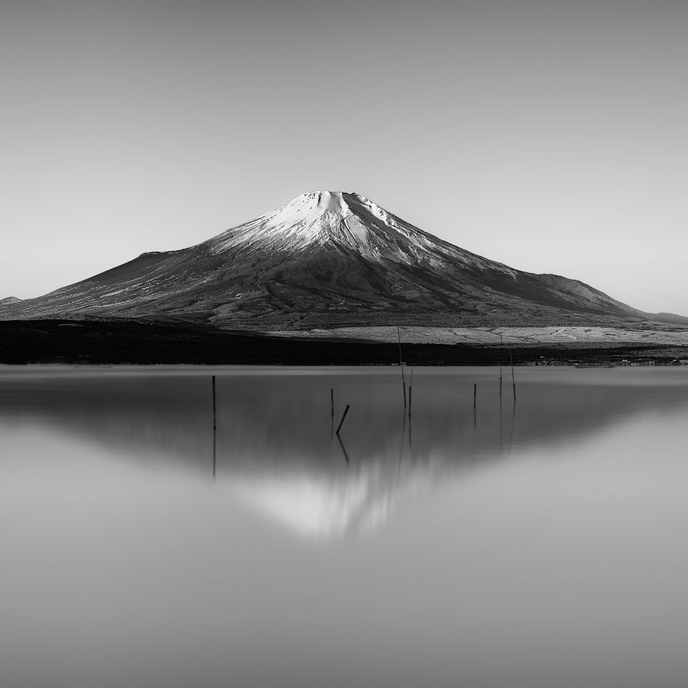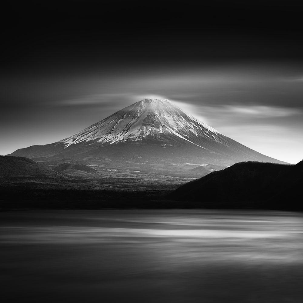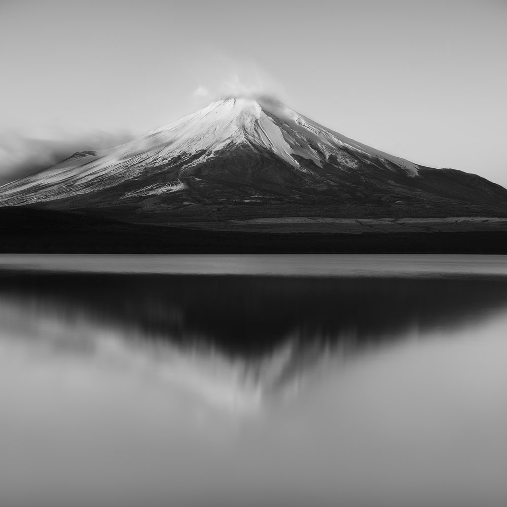Mt. Fuji – FuyÅ-hÅ (‘the Lotus Peak’) is a perfectly symmetrical cone that reflects beauty and one of the Japan’s Holy Mountains. It is a majestic creation of nature that has inspired artist and poets on their journey in discovering and understanding the beauty it represents. What makes it more interesting is that Mt Fuji is actually a three-layer volcanic mountain that is also surrounded by numbers of lakes. Though it is an active stratovolcano, that last erupted in 1707-08, Mt. Fuji has been recognized for its cultural value as a holy mountain worshiped by people since ancient times and now being acknowledged for its cultural contribution to the art and spirit of Japan. As challenging as it may seem, people desire to reach the summit of Mt. Fuji. Japan being as ‘The Land of the Rising Sunâ€, to experience and see the ‘’arrival of the light’’ – goraikÅ, – makes it more special; like a kiss of the sun. The mission of this series is to showcase Mt. Fuji beyond what it already is. This majestic mountain has become one of my obsessions when I entered the world of photography. I have seen many pictures of it and studied them for quite some time. My first encounter with Mt. Fuji was back in 2011, but I was thinking of capturing it with beautiful colors. On my succeeding visits, my mindset was in monochrome. I captured the images on digital camera and converted them to Black and White on post processing. Using long exposures, the images suggest calmness and allowed me to eliminate distractions like clouds formations and water movement. The square crop is used for balance and to turn the viewers’ attention only on the mountain. Also, the application of minimalism in my images gives more focus on my purpose. The series highlights the beauty of Mt. Fuji in the absence of color. I wanted Mt. Fuji not as the main character, but the only character in the story.