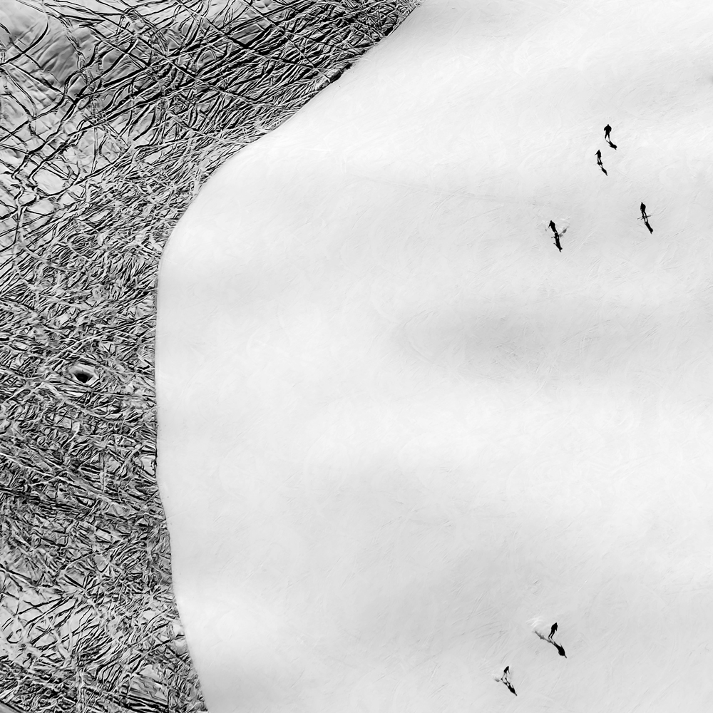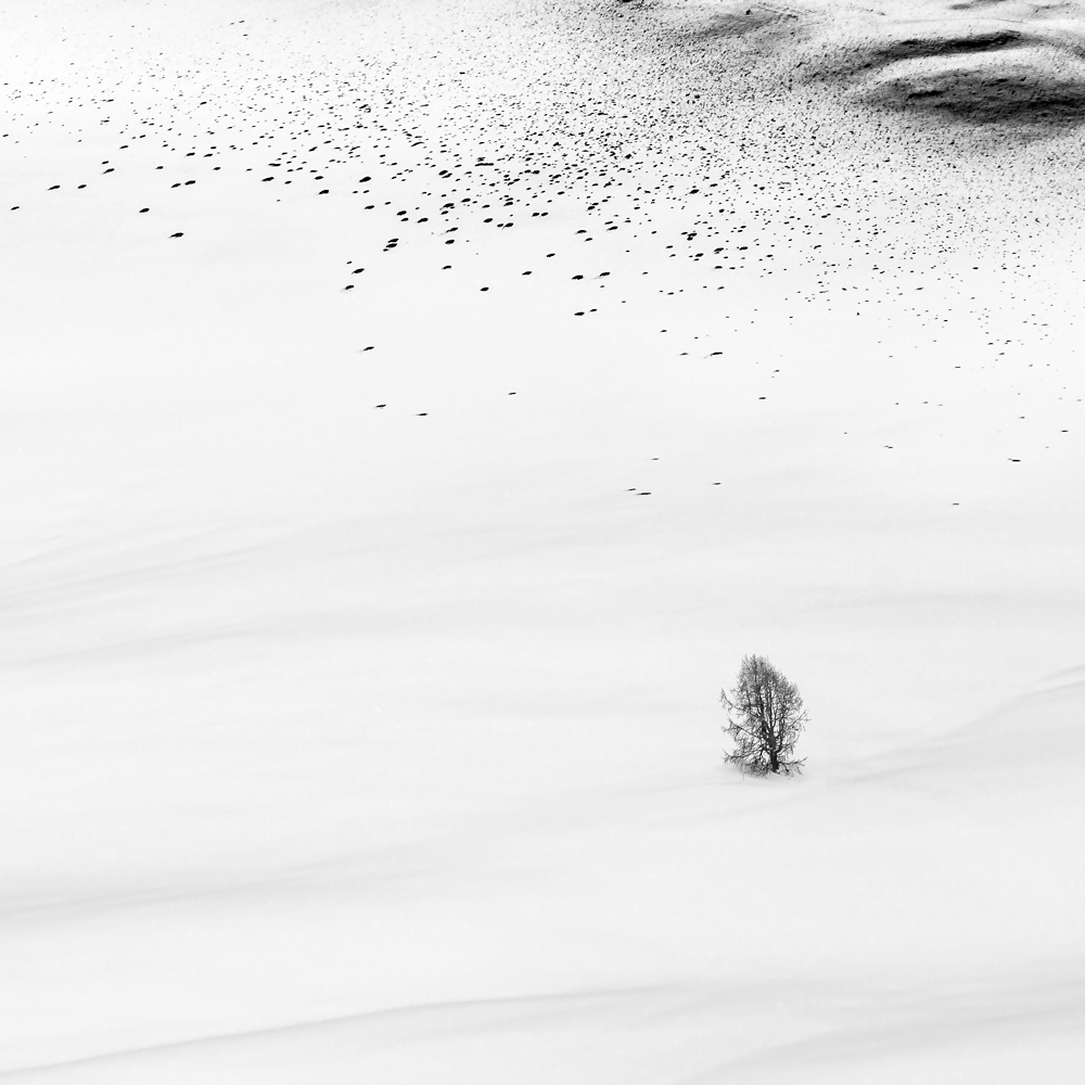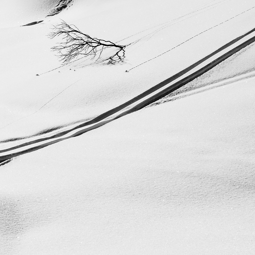 These photos, taken on the Alps, are part of a project inspired by the book "Point and line to plane" of Wassily Kandinsky. Point and line, from geometric entities intangible, from conceptual abstraction, materialize, become concrete form on the surface. The point has an extension and it is the most concise form. It can be a square, a triangle, a circle, a star or something more complex. It can be isolated or resonate with other points or lines. The line is the track of the point moved by a force that comes out of it, it is the trajectory of a creative act, natural or artificial, energy which becomes matter. It comes from the destruction of the point, of its stillness, of its silence.