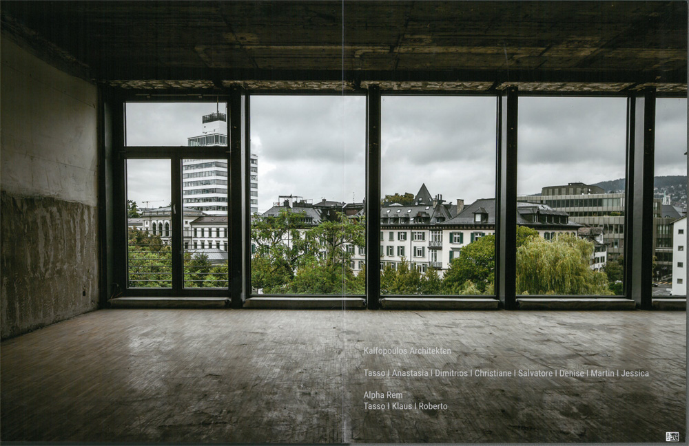 In the very first moment I saw the quality of the house as a stage. A purely documentary work on the reconstruction of the old Credit Suisse canteen in to a modern and exclusive apartment building was too little to me. The high rooms with the bare concrete walls, the view through the floor to ceiling steel frame windows to the centre of Zurich provided the ideal background for a different kind of company profile. For the realization of my pictures I quickly got to the executive architects practice of Kalfopoulos Architects. In the dust of the construction site, in a looser, as intense as impressive atmosphere I gave everyone the scope for personal development. From charismatic leader via the experienced site managers and architects to the young technical draughtsmen they were all there in 2 sessions, finally framed, in the finished book, by the coloured and contrasting images of the building shell.