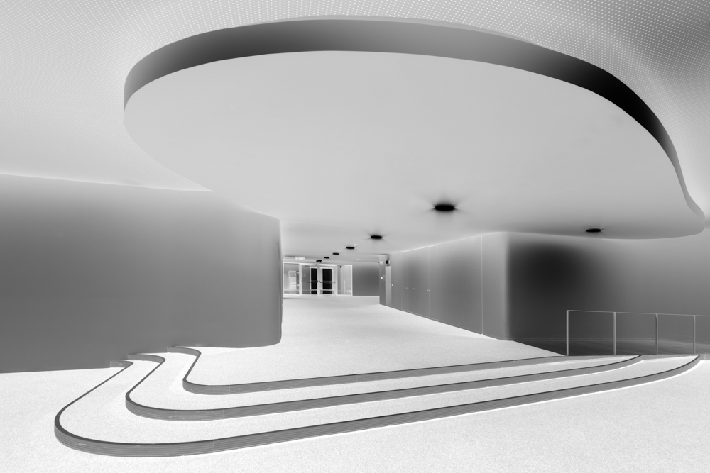 The head office building in Porto - Portugal's EDP (Energias de Portugal) was built in 2011, with the architectural design of authoring Ginestal Machado and Patricia Lamego. In this new construction, I highlight the surroundings of the Auditorium, located on floor -1. Being an underground area, I made an approach to that space in Black and White, transforming light into shadow and the shadow into light. I set out to highlight the architectural forms.
