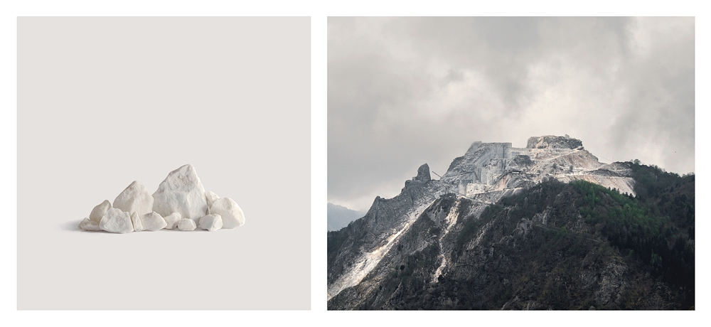 This project talks about an environmental transformation in the Apuan Alps of Tuscany, Italy. A fascinating place due to its geological, botanical and landscape characteristics also the site where the famous, white Carrara marble is extracted. Every year, approximately five million tons of the mountain are removed via its quarries, but only a minimal amount for ornamental use. In fact, 80% of the extracted marble is made up of fragments, mostly employed in the production of calcium carbonate. This material is widely used in industry, due to its unique properties and relatively low cost. It can be found in bleached paper, pharmaceuticals, cosmetics, foods, toothpaste, paints, glues, detergents, plastics, rubber, glass, ceramics...to name just a few! In short, a laundry list of the products that we use daily. But every day, as well, the environmental impact increases. The landscape is undergoing irreversible changes. An appropriate response would be to take the calcium carbonate from elsewhere or perhaps to use other substances as substitutes. But no, we continue to extract and the mountains continue to shrivel. Thus, this mountain is a symbol of the environmental issues that are critical for our country (and our world). We need long-term strategies, oriented towards sustainable activities, in order to start a different trend. Otherwise the problem will be resolved only when the mountain has been completely erased.
