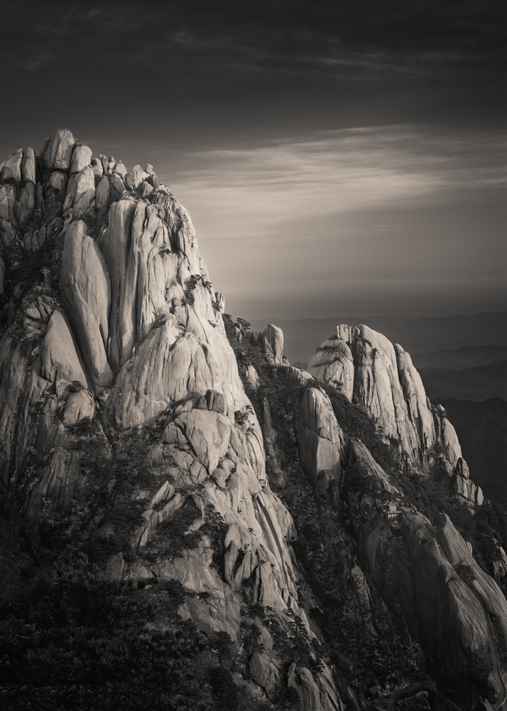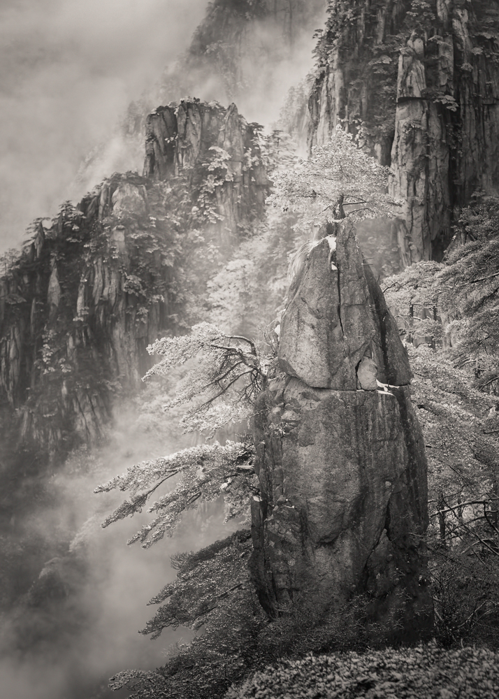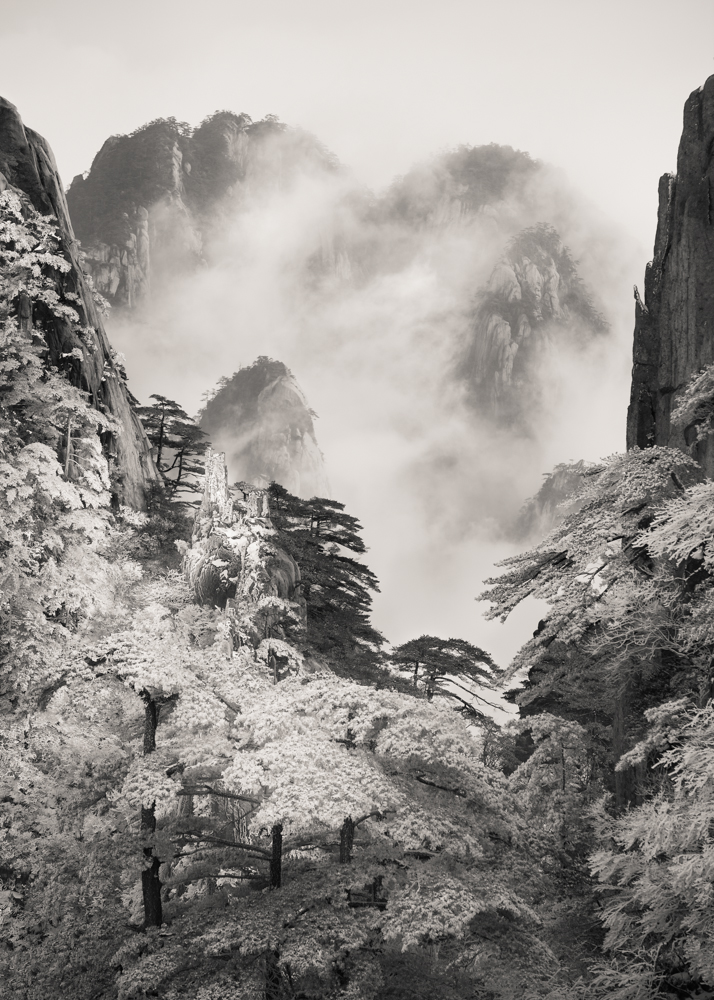 Homage to Huangshan: „Look deep into nature and then you will understand everything better“ Albert Einstein. Only nature gives you to every time and season incredible beauty. My home Tyrol is surrounded by beautiful mountains. In 2016 I have been in Huangshan/China and even I see every day mountains, it was incredible to see this fascinating scenery in Huangshan. I was surrounded by mountains of happiness. Huangshan, also known as Mt. Huang or Yellow Mountain is an exquisite 160 square mile mountain range in Anhui province in eastern China. The weather on Huangshan can change rapidly. Four days the sun was shining and it looked like summer. But then the clouds rolled in and it was snowing a whole day and suddenly I was in winter in Huangshan. Trees and mountains appeared and disappeared, it was cold and wet – but I was happy to see Huangshan in the summer and winter season within a week. It was just amazing.