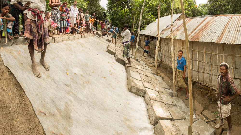 Situated in the world’s largest river delta, Bangladesh is considered to be amongst the world’s most vulnerable populations to the effects of climate change. Like New Orleans and Amsterdam, Bangladesh is at sea level, making it susceptible to seasonal storms and rising seas which are exacerbated by global warming. Though facing seemingly insurmountable challenges, the Bangladeshi are not merely coping but adapting utilizing community - based adaptations which provide an example of how the rest of the world needs to take action locally, nationally, and internationally. Having photographed environmental issues for many years, we find images for visualizing climate change limited due to the gradual and elusive nature of the problem. To combat this challenge, in our photographs we collect a range of time and collapse it into a singular allegorical narrative. Paralleling environmental issues, the accumulation of time reveals the reality of the situation more clearly than any individual moment.