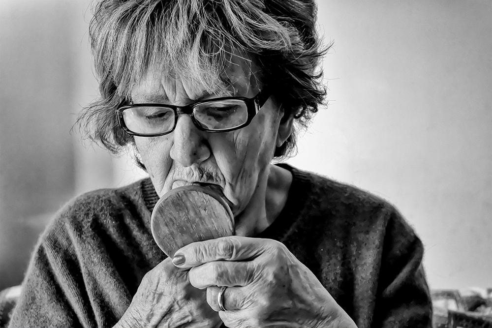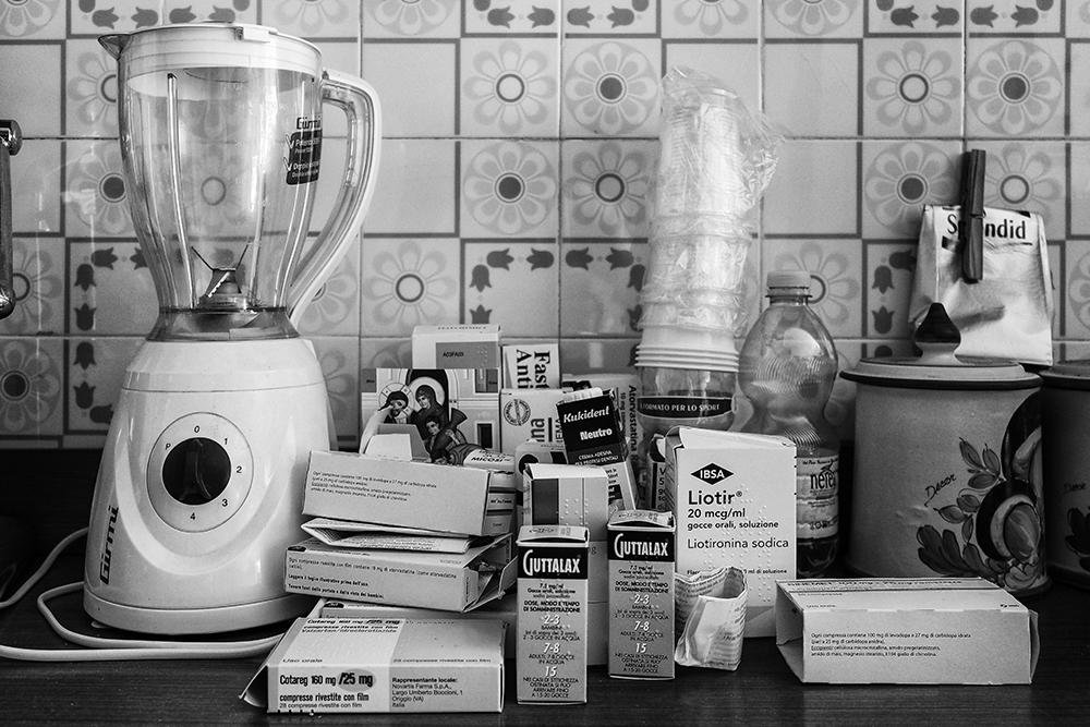 My mother. A strong woman, sensitive but very discreet. At the height of her 80 years she is facing the biggest challenge of her life: to face a disease, the Parkinson. But her gaze is always calm as she looks out of the window. Behind her, in a corner you can see a portrait of the Virgin Mary. Mary is just my mother. The biggest problems are in walking. But the slow steps do not stop her from doing all the daily chores, although now they take longer than usual. Old age can be seen from hair gradually becoming entangled in the brush and the long series of medicinal products that fill the kitchen, instead of sugar and flour. She also spends time watching TV or taking a look at old photos (though she does not like to be photographed ... and yet her son is a photographer!).