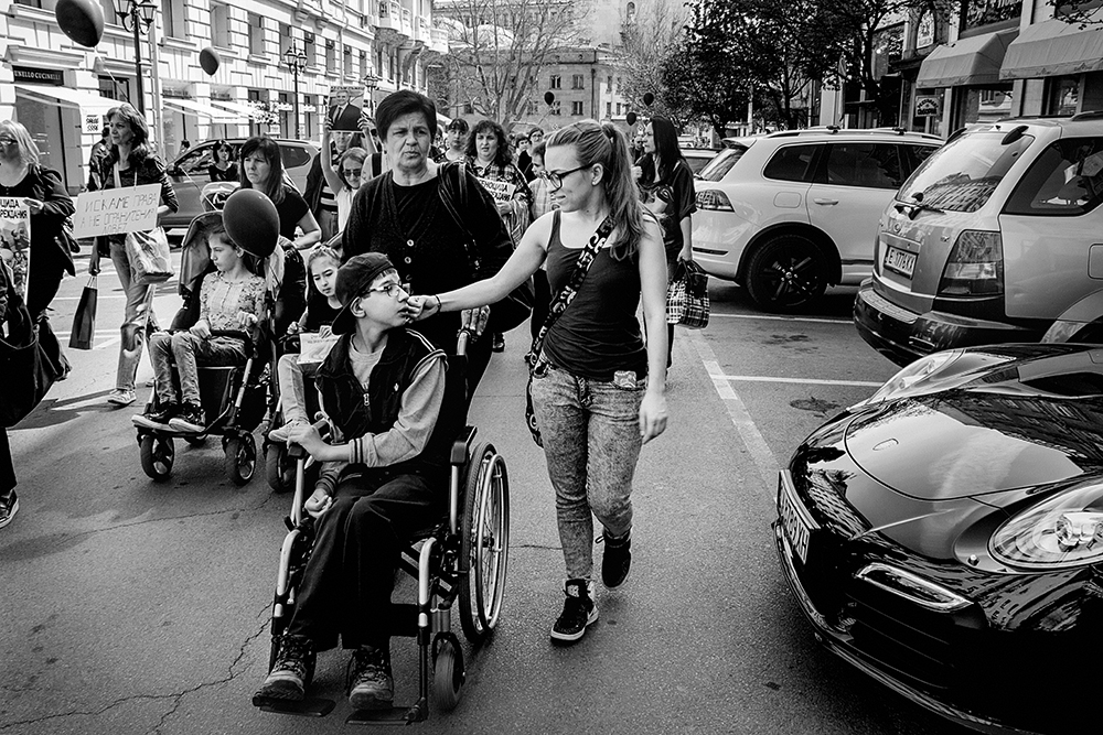 The pictures were shot in 2016 in Sofia, Bulgaria. The specific project presents the dramatic story of a child - an orphan, raised by his grandmother and his blind grandfather. A drunk driver killed his parent on a pedestrian crossing when his mother was in her 8 month of pregnancy. The baby was rescued but due to lack of oxygen remained impaired for all life. His father is long months in awake coma and died in November without out of it. His mother died in the crash. Ljubcho is 14 years old now. The life of Ljubcho is a string of struggles and everyday small victories. His treatment and numerous operations are organized by his grandmother and supported mainly by the charity. The need for civil support and charity is the result of lack of adequate state policy to protect the rights of children with disabilities. These children have no social integration and access to education. For them, caring parents, which receive scanty work as personal assistants. Paid for 2-3 hours a day. Approval for a personal assistant and financing becomes more European programs. Regulation is unclear. Parents can`t work otherwise, because there is nobody to care for their sick children. And children and parents are doomed to a miserable existence.They live on the charity of people. Sustainable and accountable public policy is lacking. The future of these children is absolutely unclear after they turn 18. They receive paltry pension. Some of them remain living corpses until the end of his life. The rights of these people have long forgotten. When Ljubcho become 18 years old, his grandmother and his grandfather would be very old. He has no other relatives. His future remains unclear. Ljubcho is one of many children with disabilities in Bulgaria without a future and a hope for a decent life.