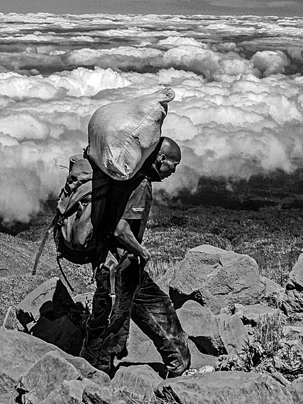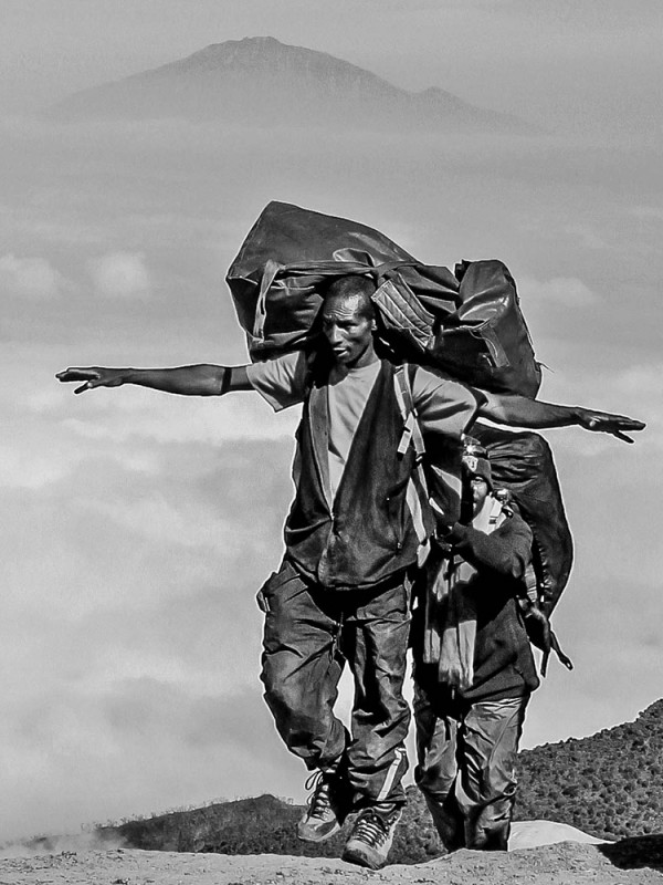 Porters play a crucial rule in Kilimanjaro climbing, without their hard work and strength people would not be able to fully experience the magnificence of the highest mountain in Africa. But the truth is porters are often impoverished Tanzanians who depend on this labor-intensive employment in order to feed themselves and their families. They may walk to the national park gate every day, sometimes for many miles, hoping that someone will be looking for porters. If they are lucky enough to get a job, each porter usually have to carry over 25 kilograms for a miserable wage – about 5 dollars per day. Although they are carrying extremely heavy luggage while climbing the mountain, they look like they are walking over the cloud, lightly.