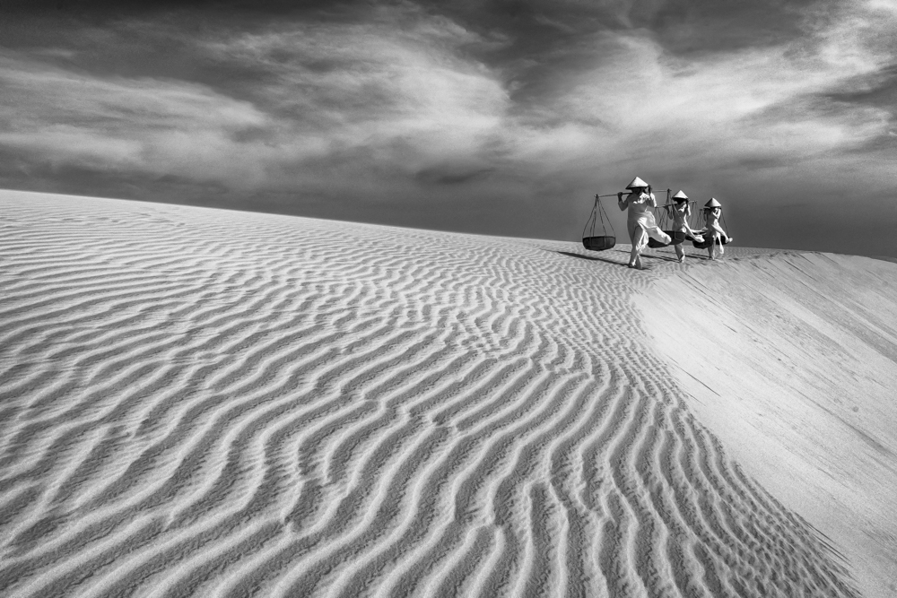 Student walking along the ridge of the Red Sand Dunes, Mui Ne Vietnam