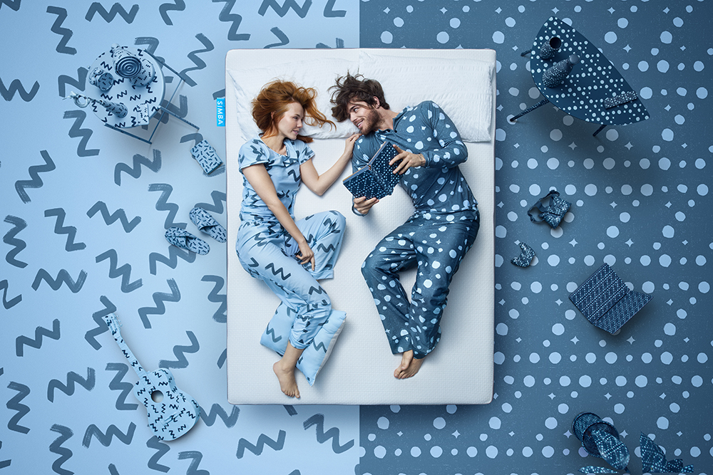 Perfect sleep, whatever your sleeping pattern. This series of images were created for Simba mattresses that are designed perfectly for couples with different sleeping habbits. Regardless of your size or shape or what you fancy doing in bed, Simba matresses are designed so that what your partner movements do not affect your sleep. In this playful advert, sleeping patterns were interpreted literally, which resulted in this beautiful and colourful campaign that helped the product stand out among its competition. BTS: https://www.facebook.com/pg/Simbasleep/videos/?ref=page_internal