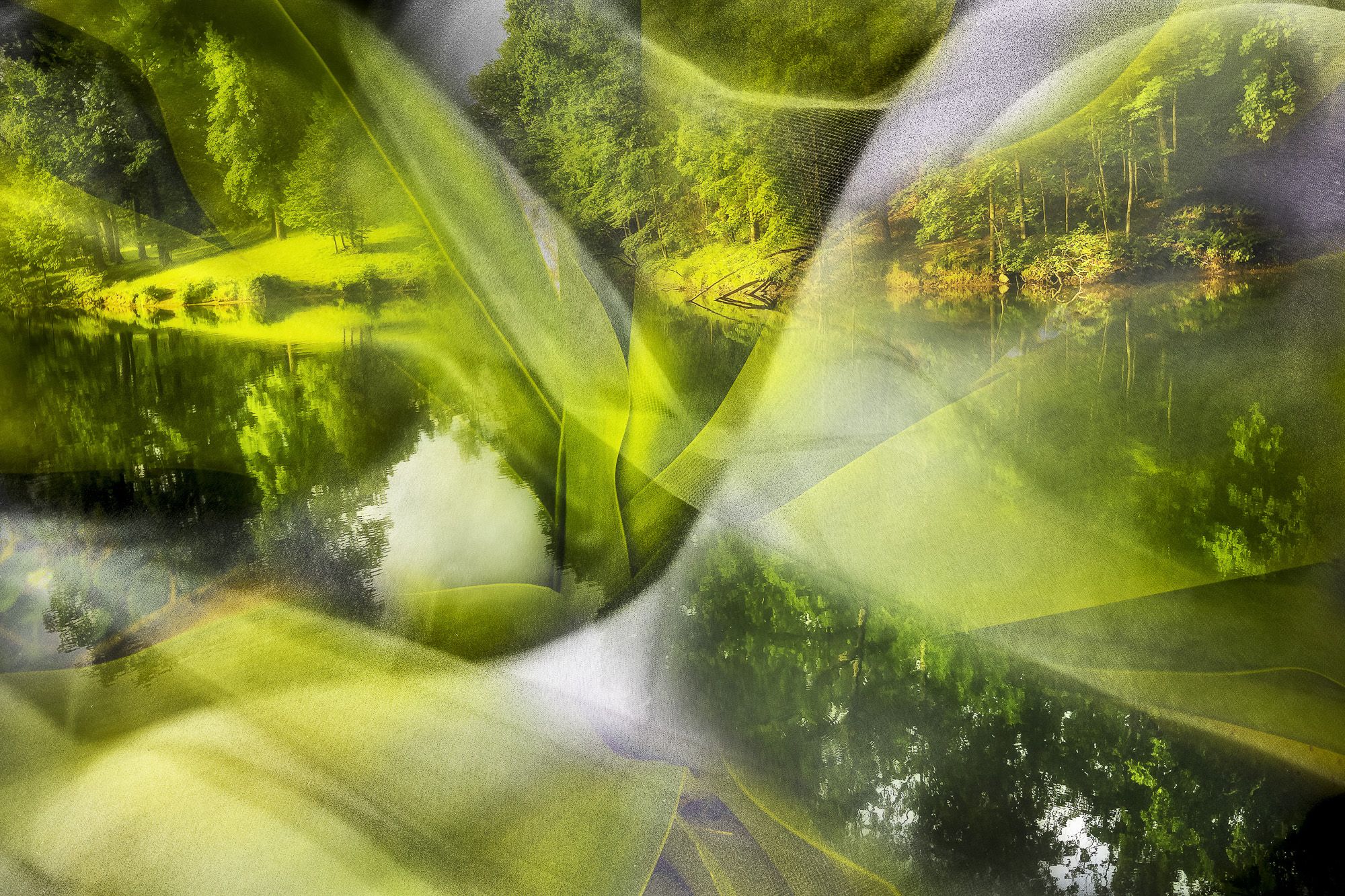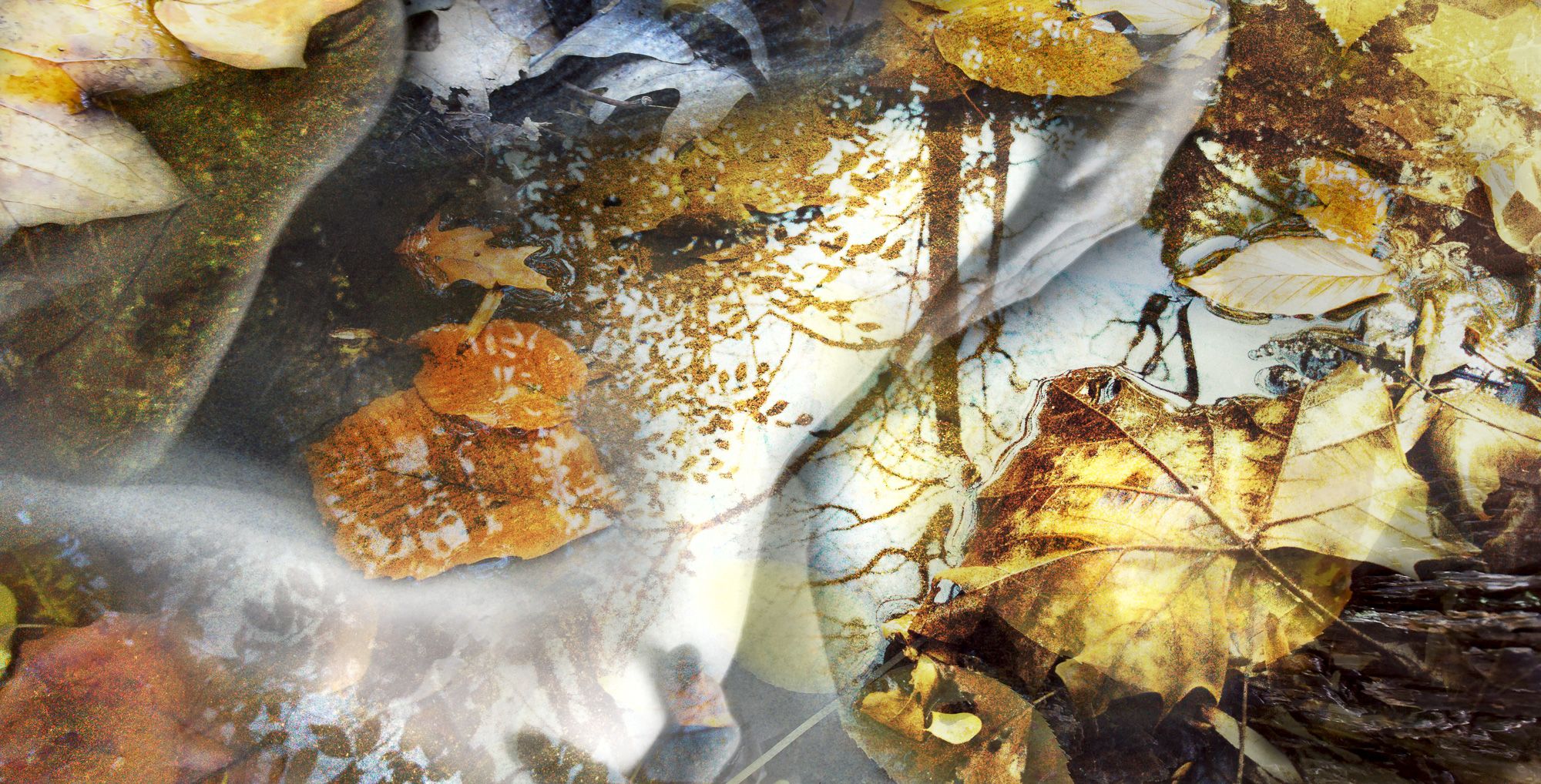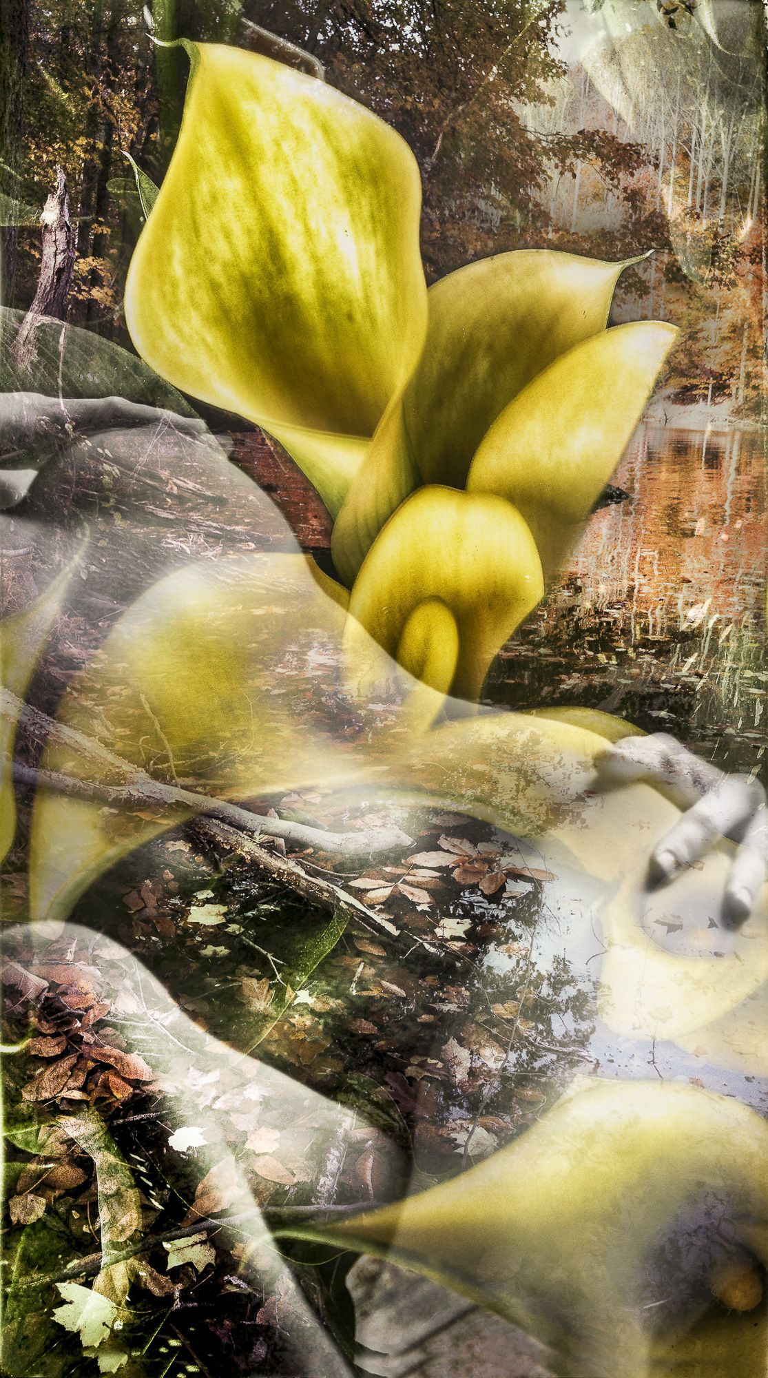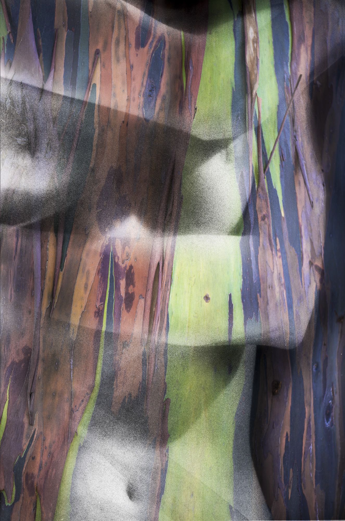 Dreamlike landscapes by combining the human form with multiple organic elements. They are “like the strata of memories. The mirrored surface of water reflects skylight into a hidden hollow, revealing something new, yet familiar. The patterns of leaves or sedimentary rocks rocks naturally suggest intricate tattoos. These compositional layers of elements give the viewer reason to look closer, to see beneath the surface. The interplay between the human form, organic elements, and the landscape create incredible beauty for me, as they are intertwined on earth, coexisting as one.