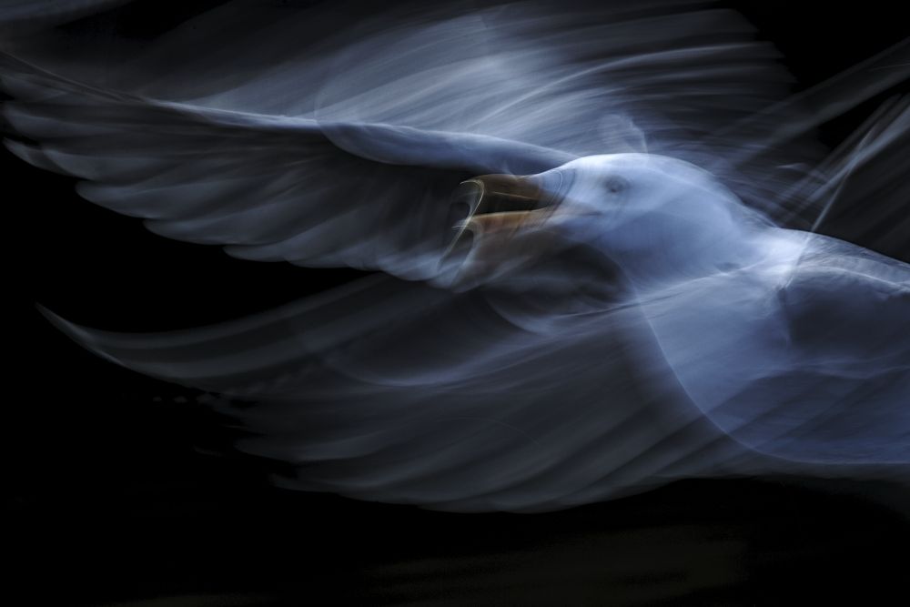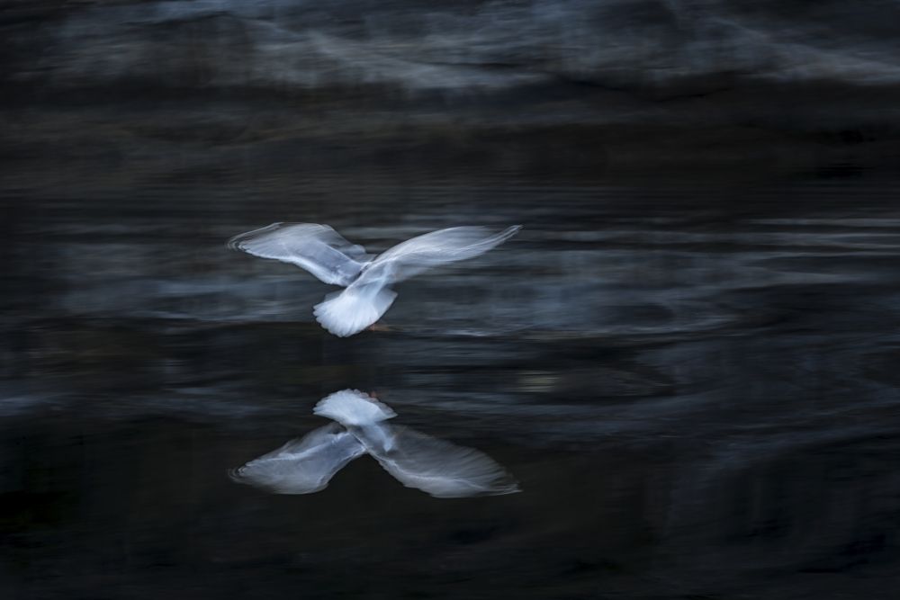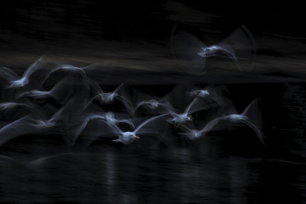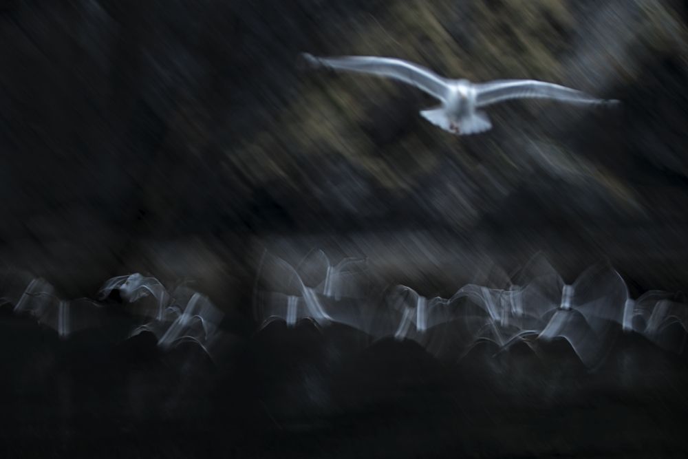 One species, one place, different impressions..I have spent some time with regular bird species (seagulls) in dark norwegian fjords and I tried to capture and vizualize the motion and freedom of birds and melancholic mood of the place. Something what usually remains hidden to human´s eye but something what can be revealed using long exposure and underuxposure.