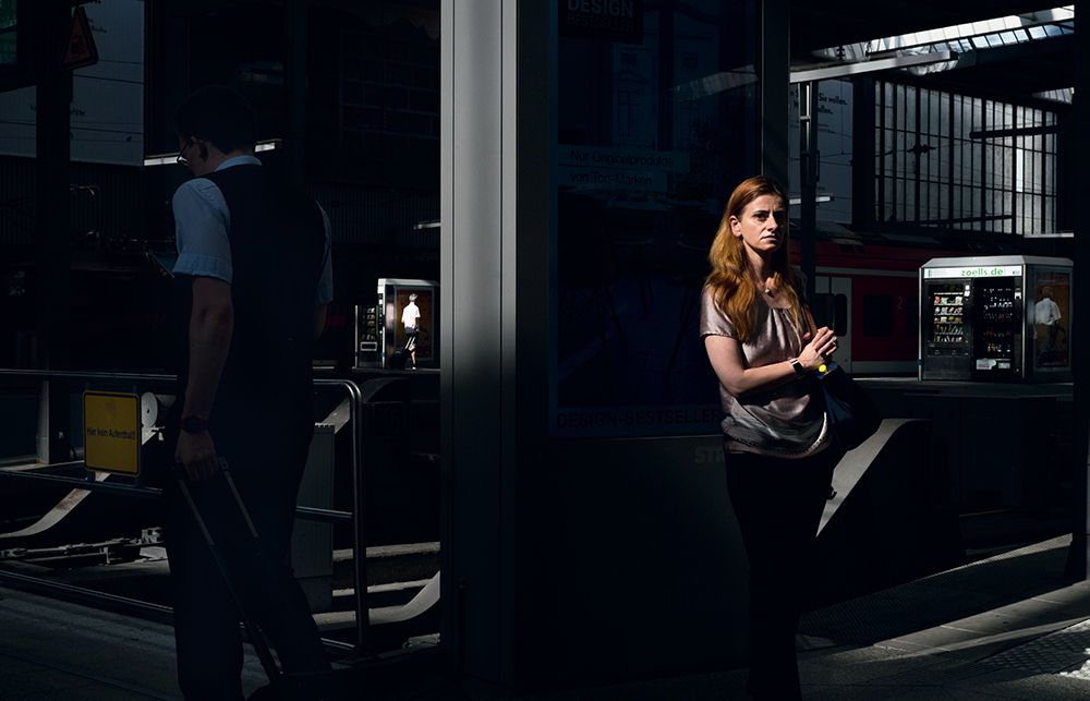 The city is a network of transit spaces that are far less anonymous and monofunctional than proclaimed in Augé's theory of nonplaces. On closer examination, the transit space is a classless space and a backdrop of various speeds and encounters. Although it's primarily designed for movement, it is also a place of standstill. Staged by the light, the chaotic urban drama looks like a perfectly composed symphony of human interaction - nowhere the interplay of coming and going is more beautifully orchestrated. This series is a study on the cyclic movement patterns and coincidences of transit space.