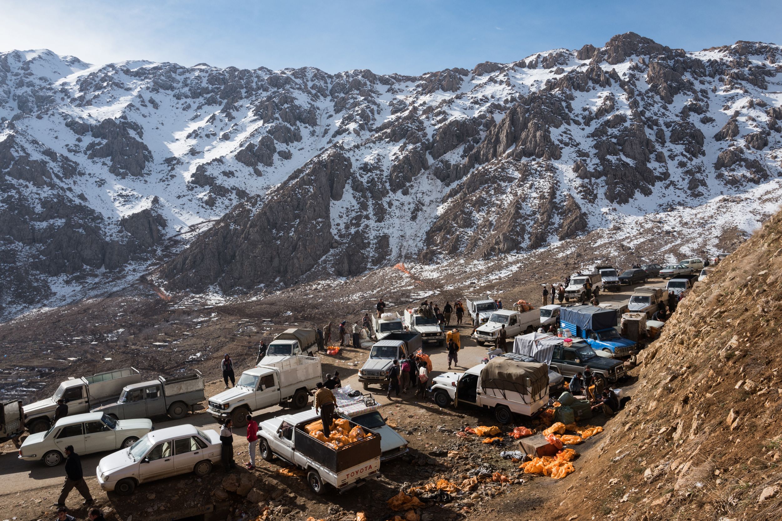 Everyday, hundreds of Kurds cross the border between Iraq and Iran smuggling goods for a few dollars.?They often come under fire from border guards and Iranians shoot their mules as a punishment. They also risk their lives in the treacherous mountain passes and cold winter temperatures on the Kurdistan Region. More then 100 Kolbars have died in 2017.?Goods in Iraq are cheaper and thanks to the Kolbars’ operations they enter into Iranian market avoiding the tax system. Kolbars carry alcohol, cigarettes, TVs and electronics, walking for kilometers. The cargo can weight more than 50 kilos.