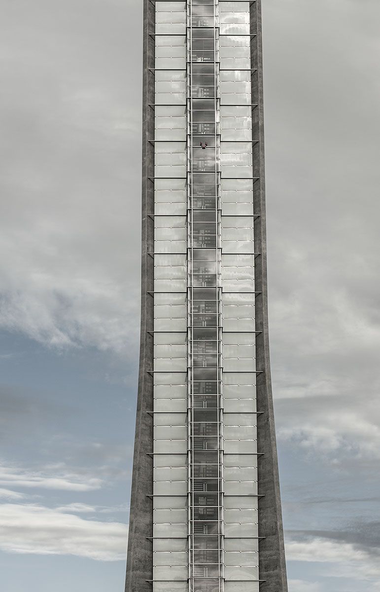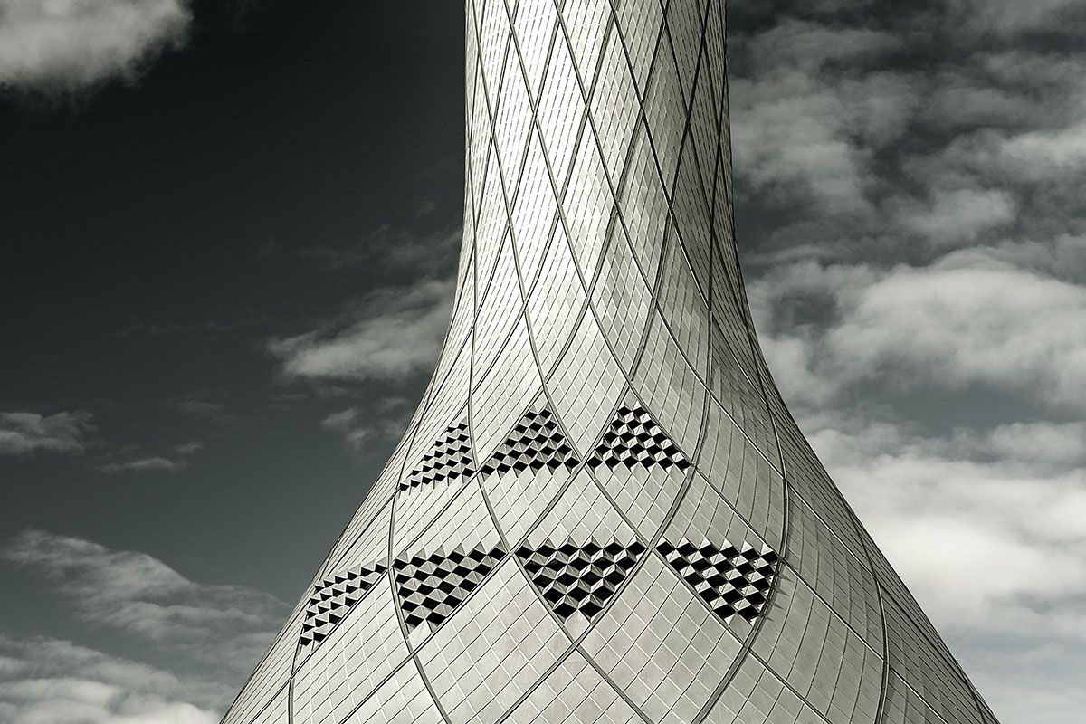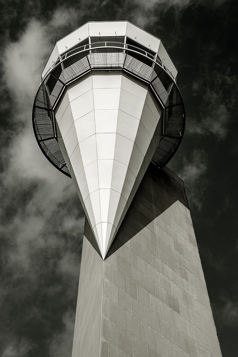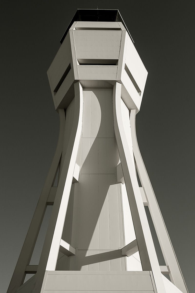 "Art of the Airport Tower" is a series that explores over 85 contemporary and historical airport control towers in 23 countries and interprets them as architectural abstractions, symbols of technological change, and cultural expression within the airport landscape. The tower is viewed as a vessel with a powerful presence—watching over the vastness of the airport and sky; a nonjudgmental cultural greeter; a choreographer or conductor of the aircraft dance; a mother bird caring for her flock; and an omniscient, intelligent structure, keeping humans safe.