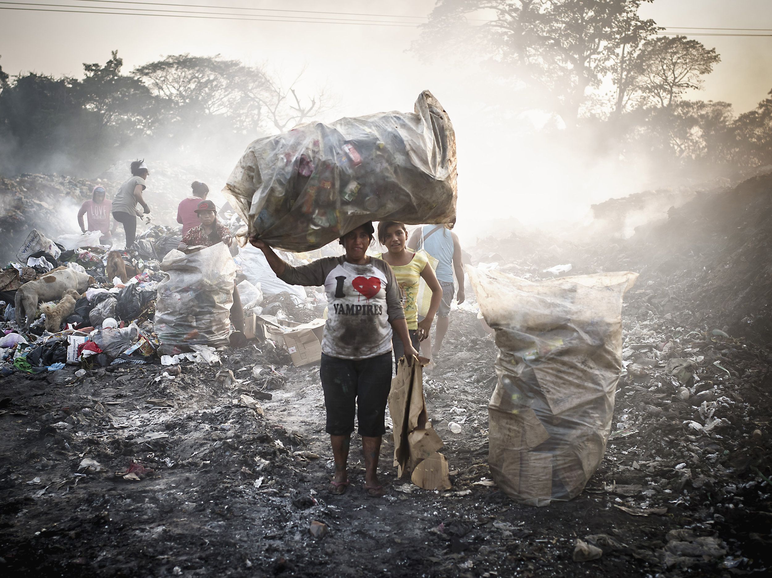 Many materials in garbage had a life cycle that came from or were recycled through a first world country where waste management is controlled and circular, but in the developing world, this is not possible. Life in Waste takes you on a journey of various countries that had an inflated waste sector due to a certain event and the people who migrated to these places in search for work. Each location (Syria, Haiti, India, Uganda, Guatemala, Bangladesh and Honduras) has a unique profile, but they all share similarities in the damage we cause to the people and the environment using this work ethic.