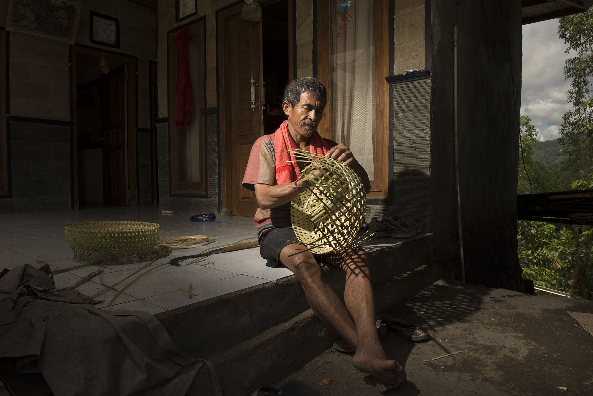 This body of work captures the daily struggle of those affected by the Mount Agung eruption in East Bali, Indonesia. It shows how human beings in-light of all difficulties brought by the environment, employ their creativity of weaving baskets to solve problems one day at a time. Having sold their main source of income - cows before the evacuation. After spending months scattered around the island in refugee camps they have returned to a worse situation than they were once in. The uncertainty of not knowing is a difficult challenge to face especially when the need to return to normal is desired