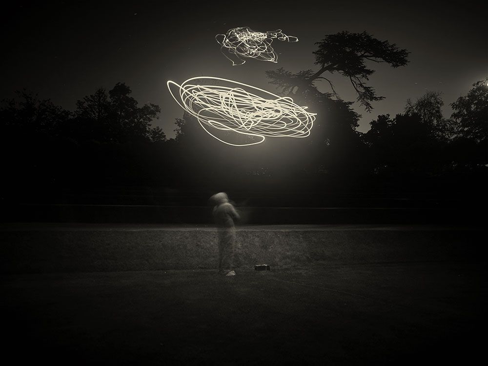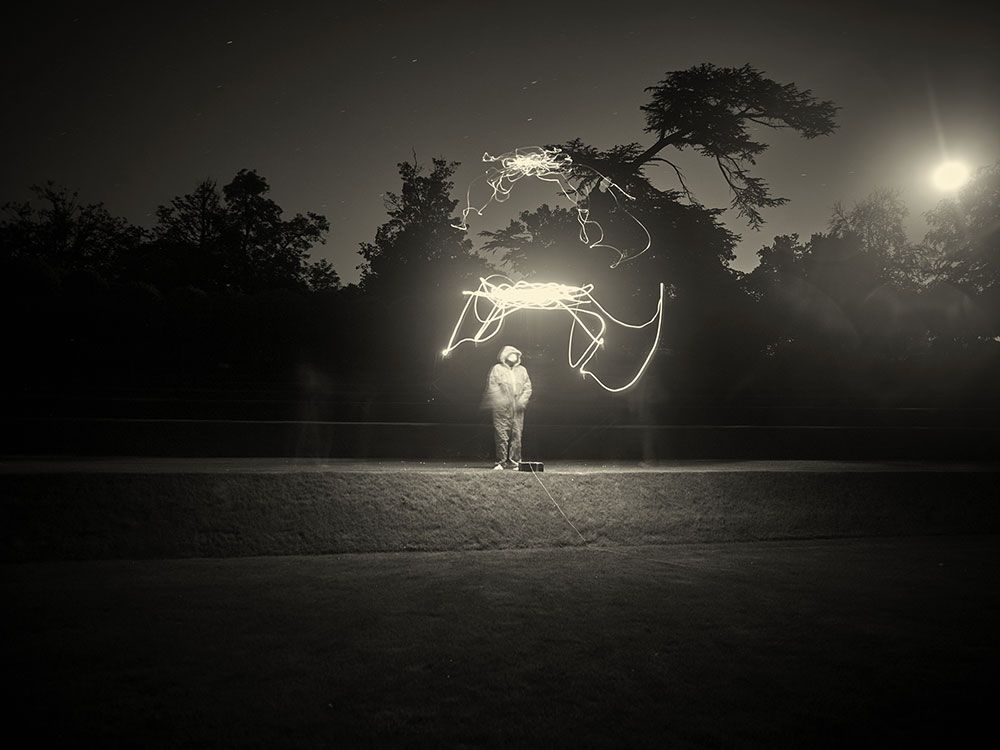 Working with specially constructed drawing tools in the dark of night I engage with natural elements including the sea and the wind to map out spaces and environments, tapping into the natural energies to trace and draw, and document unique, live, site specific performances. The reality of the captured image is fundamental to all my work, particularly with long exposure photography. This concept of time is crucial to my ideas, exchanging the classic definition of photography as a series of instant glimpses of the world in which we live, to a personal definition of ‘space-time’.
