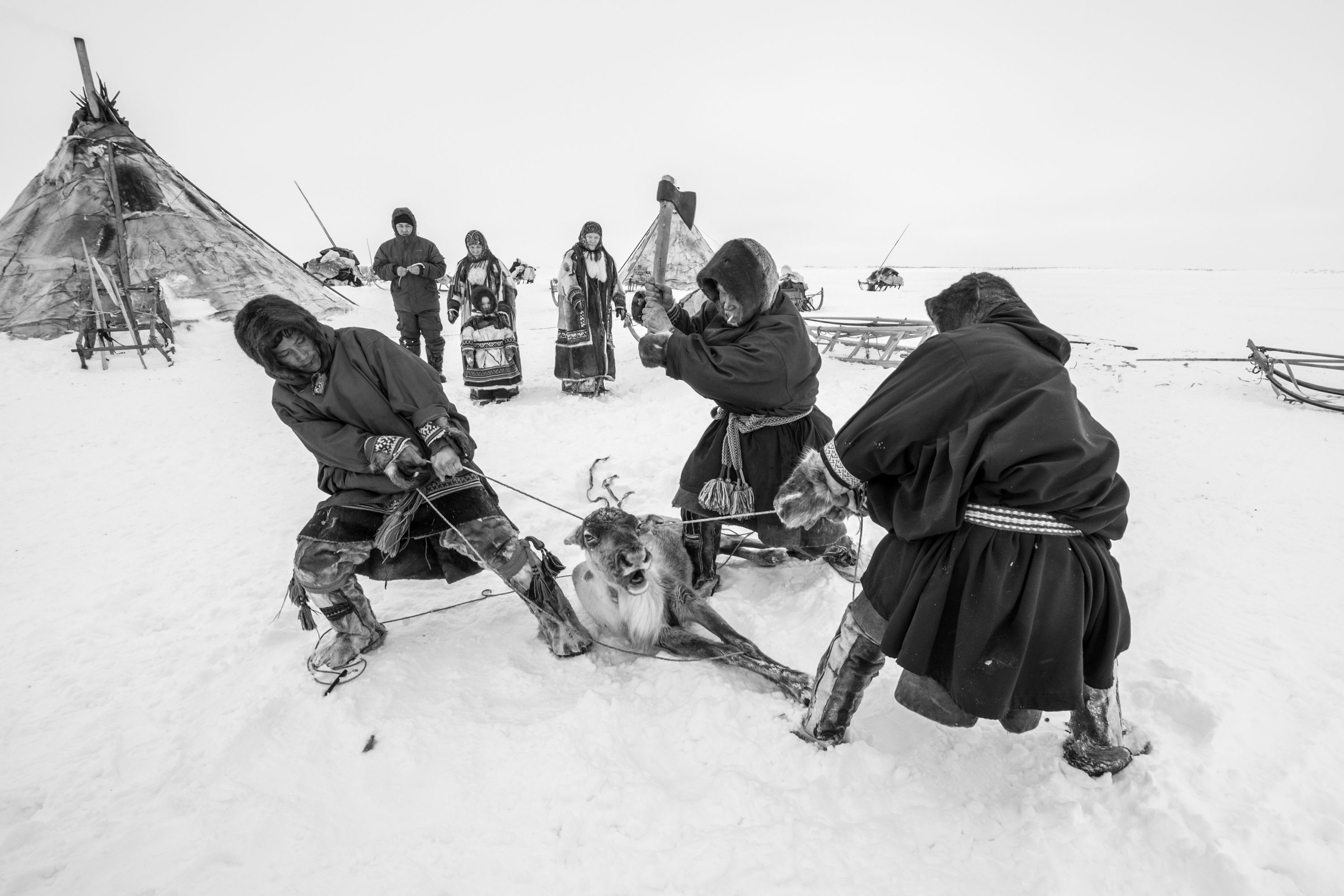 The Yamal Peninsula: a stretch of peatland that extends from northern Siberia into the Kara Sea, far above the Arctic Circle. Yamal in the language of the indigenous Nenets means the end of the world; it is a remote, wind-blasted place of permafrost, serpentine rivers and dwarf shrubs, and has been home to the reindeer-herding Nenets people for over a thousand years. Amazed by this family, who live in perfect harmony with their surroundings in polar conditions. I hope they will be able to protect themselves from the relentless attacks of consumerism, pollution and discrimination