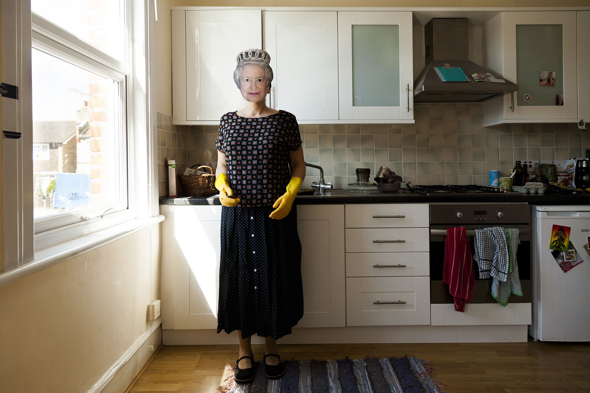 "I wish I were British" is a series of self-portraits investigating the relationship between personal identity and freedom of movement. I moved to London with my partner five years ago. The UK seemed to offer good opportunities and we decided to invest our energy in this country. Then Brexit happened. This project is my own way of processing the experience of Brexit. More broadly, "I wish I were British" is about the rights and privileges we are entitled to on the basis of our nationality. I imagined that wearing a "British celebrity mask" could be enough to become a British citizen.