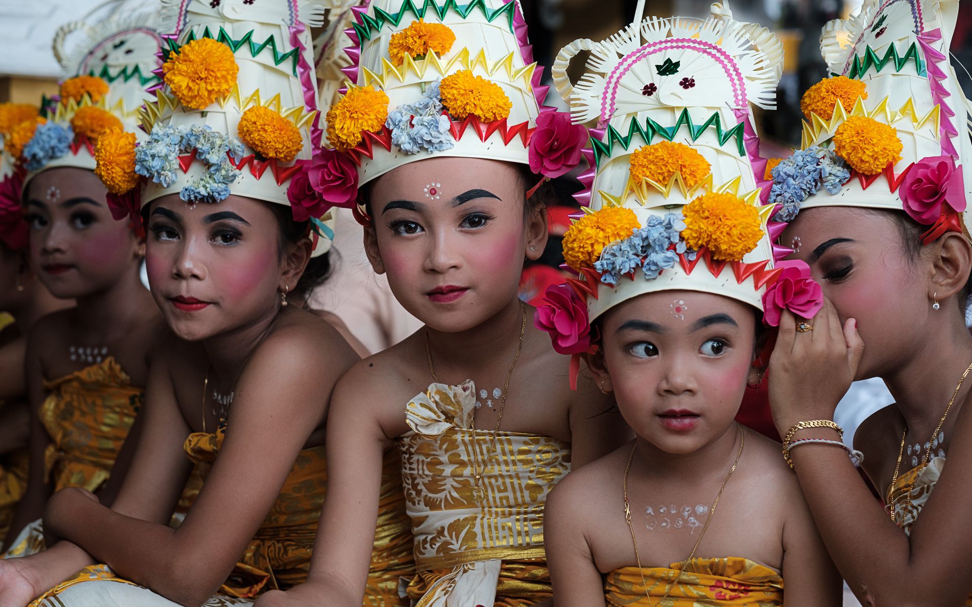 The "Melasti" is celebrated annually in Bali as a purification ritual, which serves to cleanse the world from sin and bad Karma, through the symbolic act of receiving "Tirta Amerta" (nectar of the Gods), which is holy water of the sea. Part of the Melasti ceremony takes place on the beach, where the "Tirta Amerta" is received and the "buana alit" (soul of each) and the "buana agung" (the earth and its creatures) are purified of bad thoughts, influences and bad Karma, being all negativity thrown into the ocean. Children do also participate in the ceremony wearing traditional costumes.
