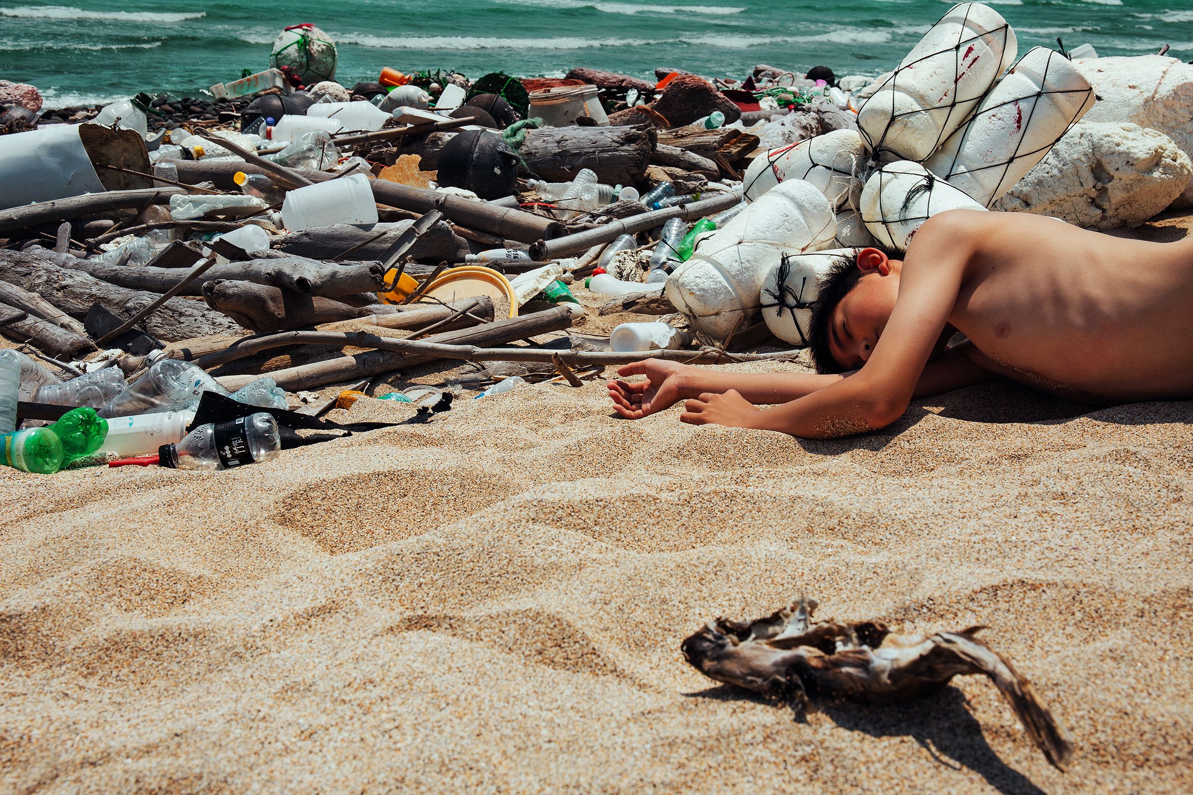 Penghu is a small island, which is the name of an archipelago situated off the western coast of mainland Taiwan. There are stunning beaches and beautiful ocean in this island. Unfortunately, the northeast monsoon brings lots of garbage. They almost cover the beach and destroy environment. I want to appeal everyone to use less plastic and protect the environment through this series of works.