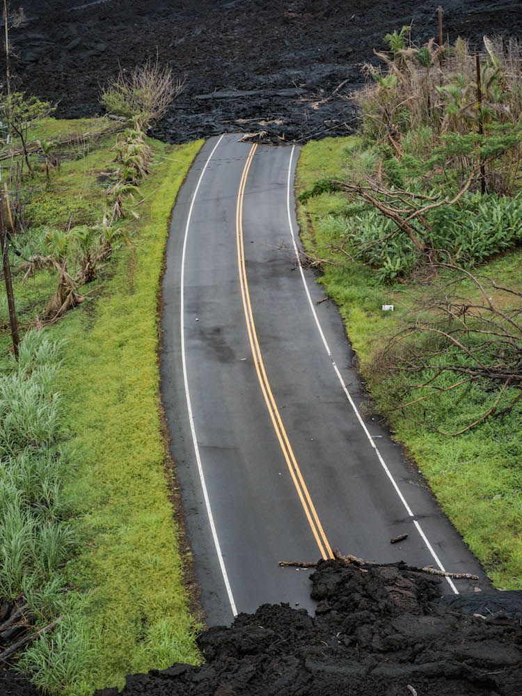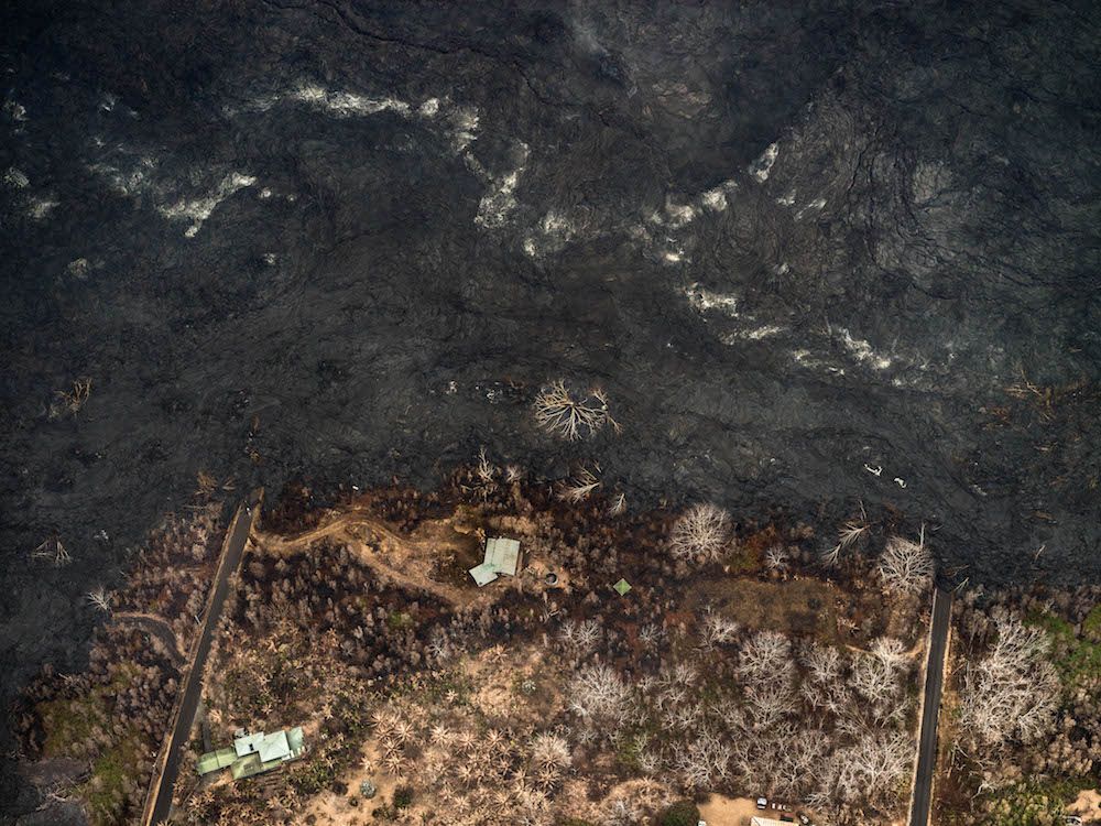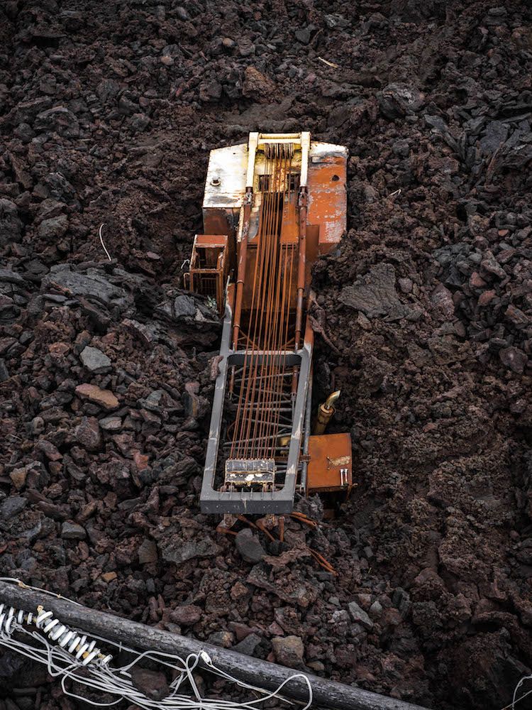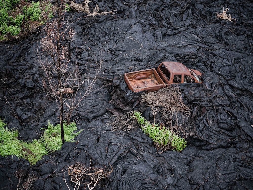 Cars, houses, buildings and trees found left behind in the cooling lava river of Kilauea's Lower East Rift Zone. Their survival of such a destructive force becomes a testament of what once was a thriving community, now wiped clean by the volcanic river.