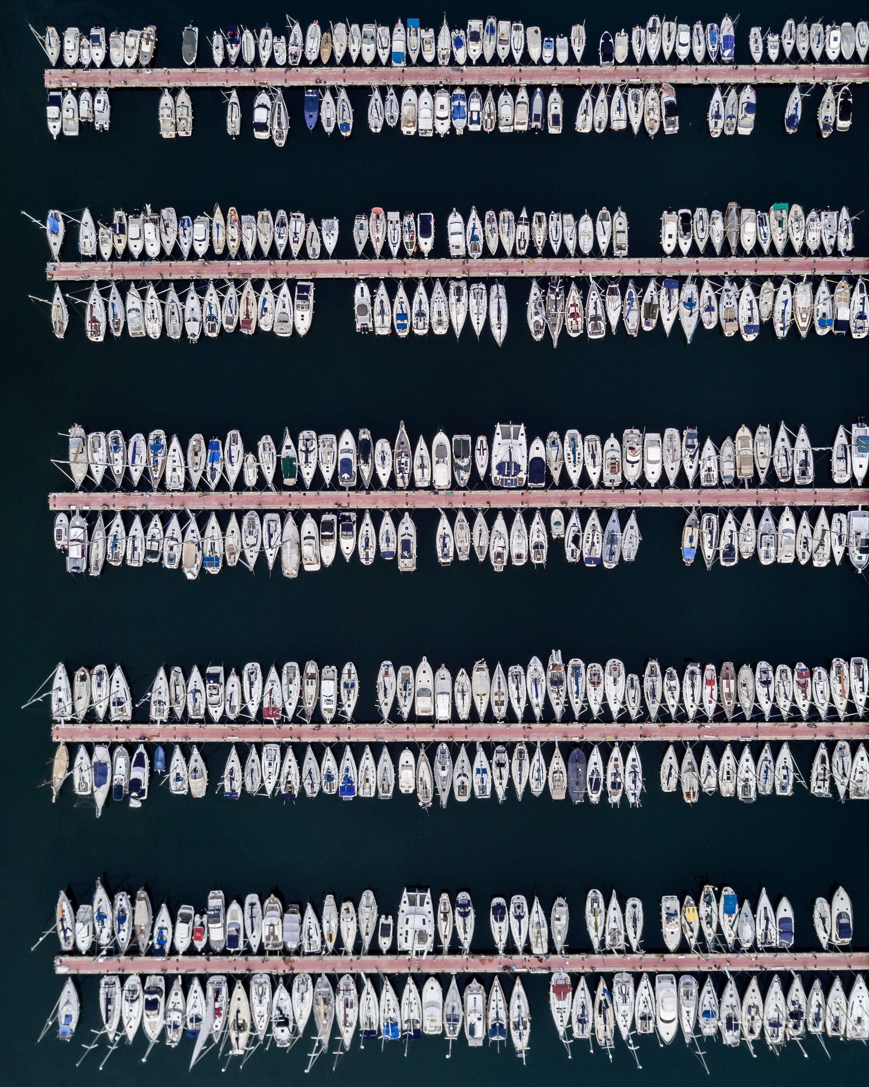 A series explores the coastal city of Barcelona from above, creating geometric images of the Spanish city’s buildings, shore, and sea. Soaring high in the sky, this instrument gives a unique perspective of the world, opening up a new way to look at any environment. With this vision of the Catalonian capital, we’re able to gain a new appreciation for the smaller building blocks of the urban fabric.