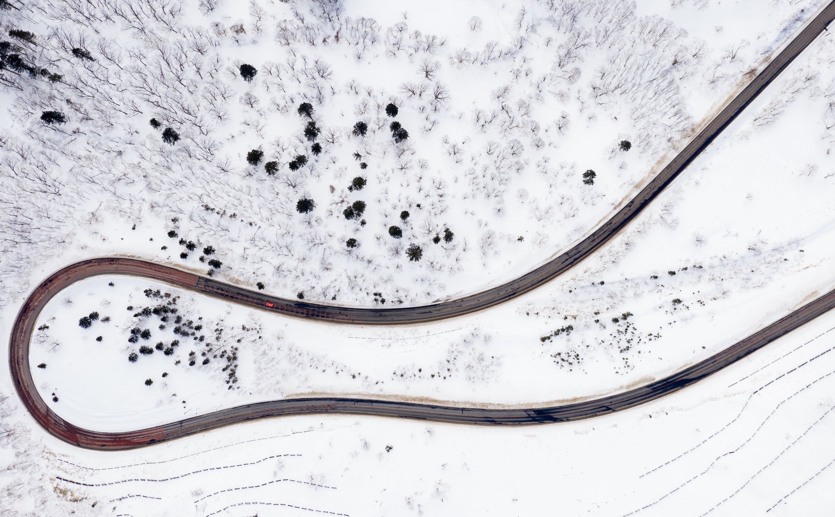 This photo was taken via a drone in Hokkaido, Japan, winter 2019. It was a windy day up there in the Japanese volcanos, I knew that I’ve a quite limited Time slot right before the weather in the northland become stormy! My main goal was to taking a photo with a natural objects contrast, due to a heavy Snow back there, the curly black road with the red car on top, helped me to manage to Create a natural loop, this red car came out for nowhere and gave it feeling of a Miniature childhood game!