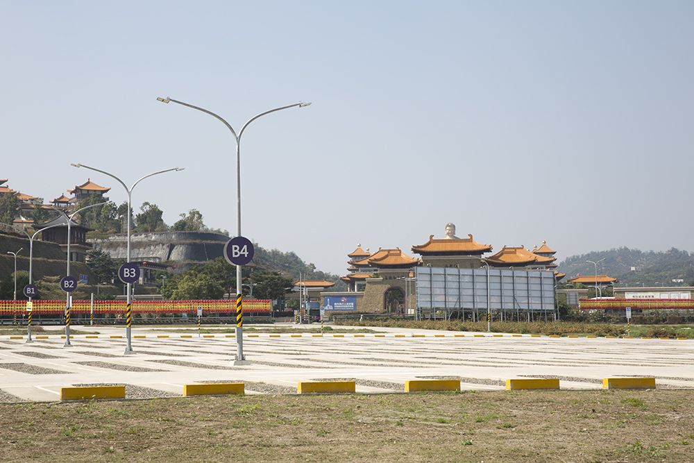 Bouddhism is one of the main religion in Taiwan. Foguangshan, which is situated in Kaohsiung, is one of the most famous bouddhist holy place in the whole island, it is also the biggest pilgrimage place. In order to resolve the problem of car parking space, government decided to remove about 5 tuns of river land to build a new public parking and designed a friendly pedestrian space to welcome pilgrims from all over the country and even the world. Actually, places specially designed for human social activities are totally artificial and produced so many fake landscapes.