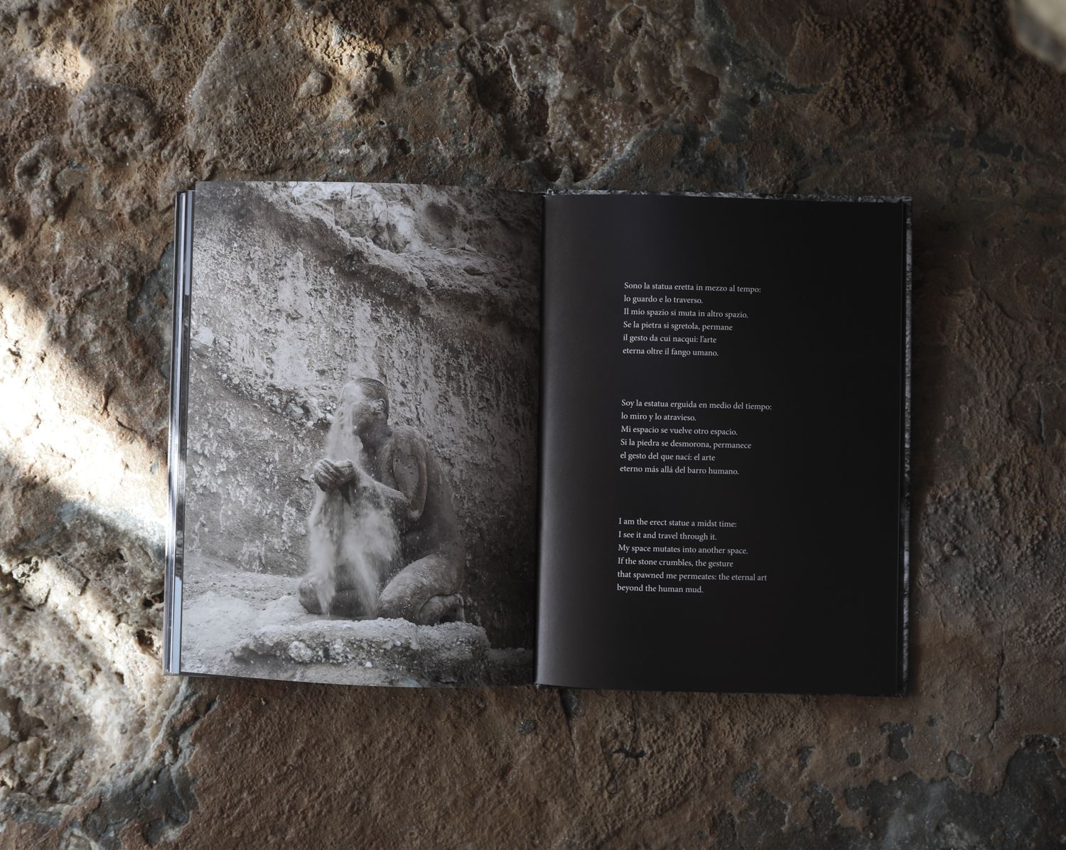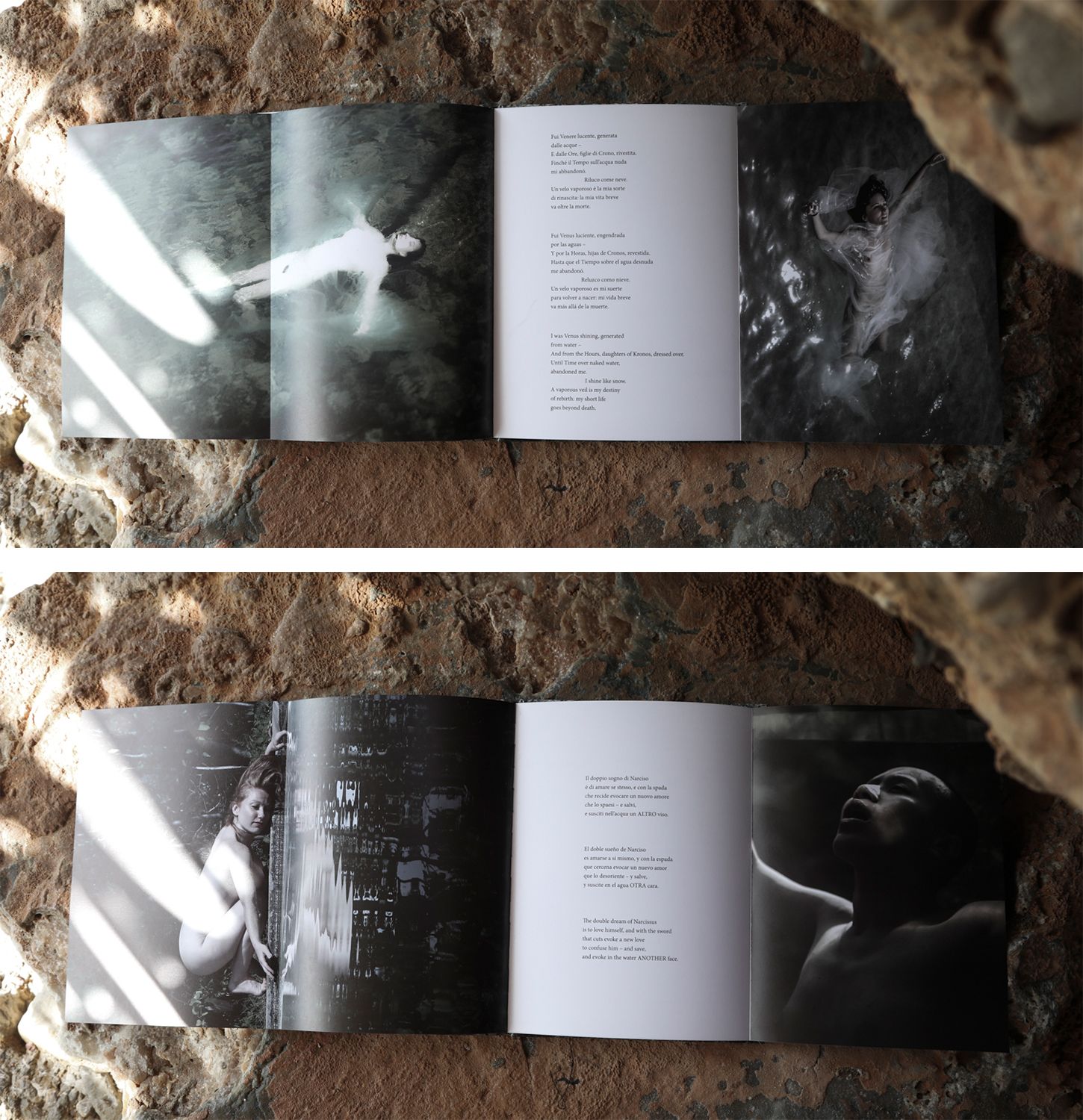 El Origen: the first book of photographer Marco Ferraris in the series "La Isla": a video, photography, poetry and performing art project started in 2010. The work is based on meditations and convictions linked to the search for a primordial contact with nature, with the feminine universe and with the mystery of the birth of the living being on the bare earth. The cover of the book is thermostatic and the colors of the monochrome pages are born from the associated photos. The poems of Giancarlo Ferraris are inspired by the same images, emphasizing the shadows and the lights.