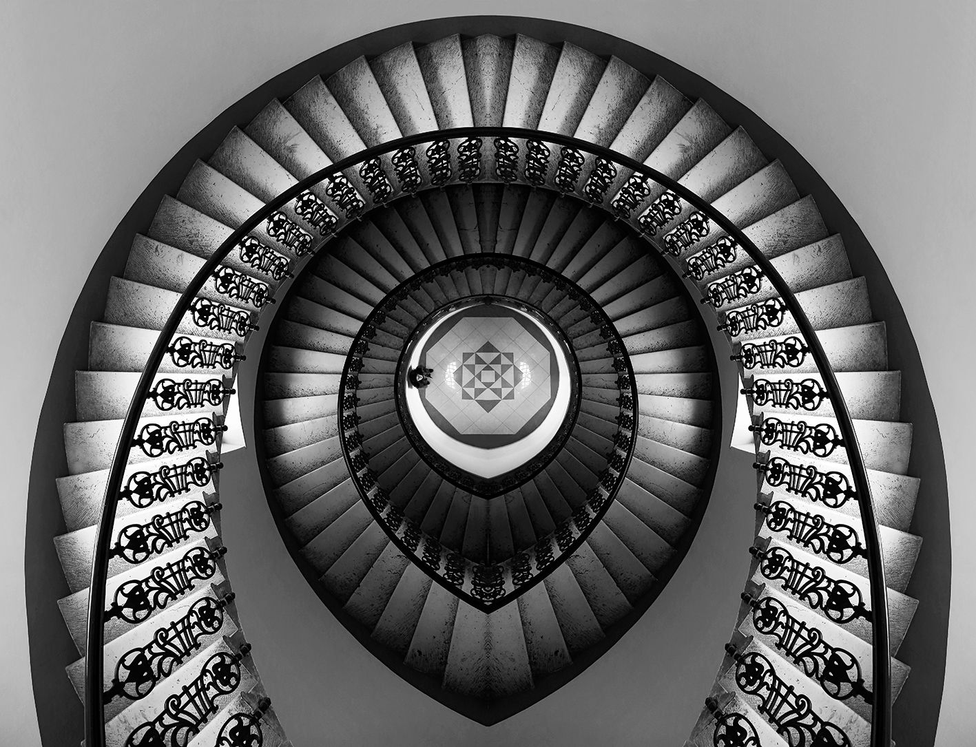 This photo was shot on a staircase of an very old building in Zadar, Croatia. My daughter was at the ground floor looking up at me. I duplicated the stairs to the right side because the composition and the motif reminded me of a Dutch graphic artist M. C. Escher whose works I have admired since childhood. His work features exploration of infinity, reflection, symmetry, perspective, impossible objects, etc.