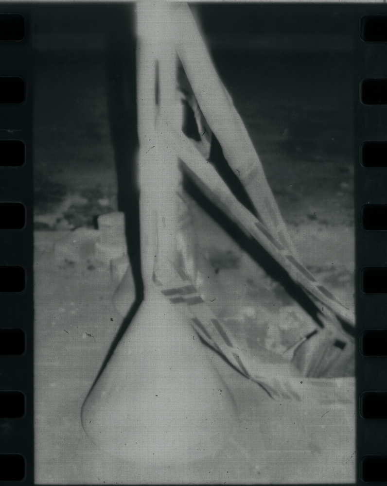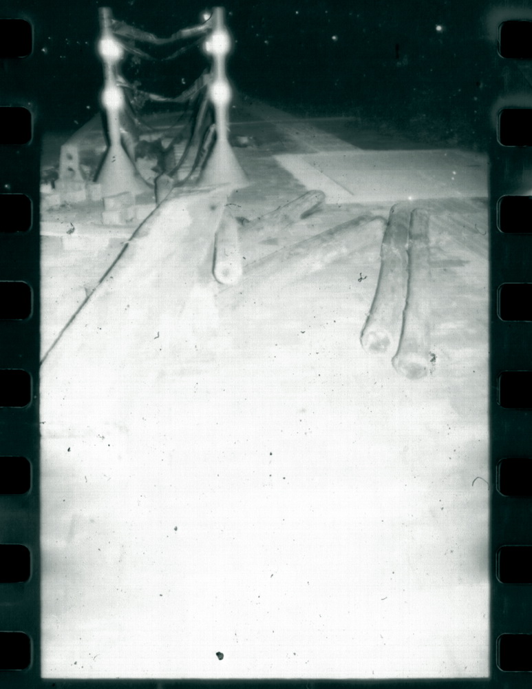 Close to my home are building a new highway, I have to pass through it almost every day and ever think how it looks like some kind of contemporary exposition. Ergo my bro and me stepped in the construction place some nights ago and I took various photographs with the flash light. My idea was to build a surreal setting using the strong light against the objects surrounded of darkness and make use of the sculptorical properties of the concrete, earth, separations, etc. The B&W film was drowned in salt water for a night and then developed. This pieces are scans of the negative film, I want to use the aesthetics the scanner brings, is part of the experimentation processes I'm practicing right now. Is a project in development.