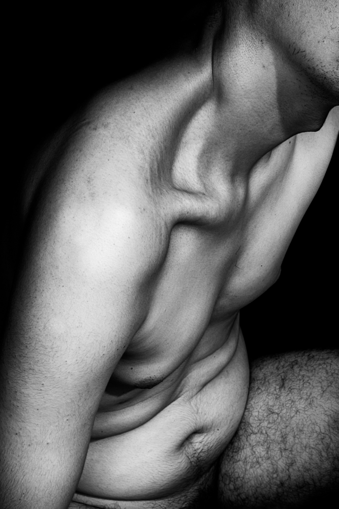 Impression asks which bodies are shown and which are relegated to invisibility by depicting a variety of subjects to challenge the dominant idea of a singular idealized body type that is perpetuated in the history of photography. Throughout this history, disproportionate attention is placed on the work of male artists. However, even female artists such as Imogen Cunningham have focused on these ‘flawless’ bodies, which perpetuates the notion of an idealized body in a more insidious way with the co-opting of one’s mind, more so than gender, becoming the fundamental issue. The work combines dramatic studio lighting, motion, and contorted gestures with black and white photography to concentrate on the elemental aspects of texture, shape, contour and tonality. Ultimately, this work counters social and cultural forces that define and control expressions of body and body image; the result is a work that functions as a tool for acceptance of self.
