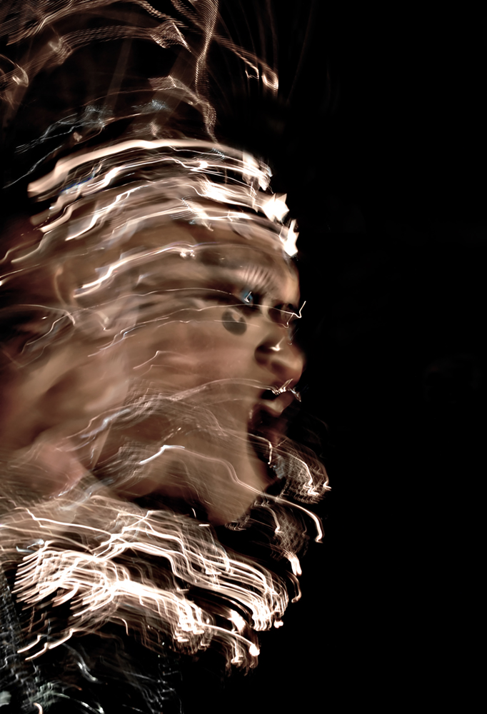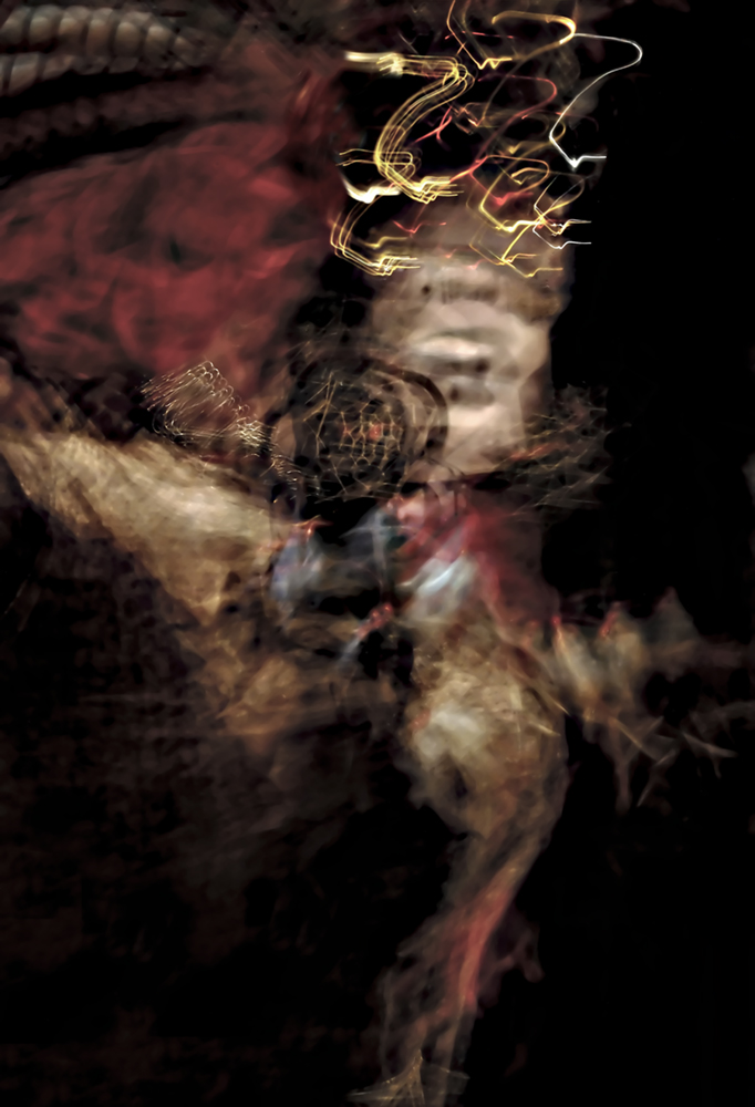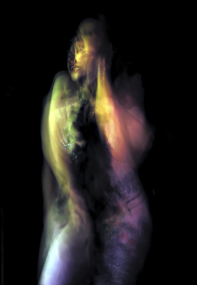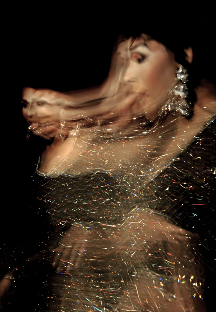 The burlesque images address how burlesque performers function within a gendered, sexual space. Burlesque offers a thin veneer of empowerment to the performer, while still retaining an exploitative quality. This promotes an ambiguity concerning how burlesque fits in the realm of sexual exploitation, traditional and contemporary feminism, and how it affects the performer and the viewer. Is burlesque an exploitative act? Or does it empower the performer? Does it function as both an empowering and exploitative act, and what role does the viewer take within this paradox? Like burlesque, drag performance also functions within a sexual gendered space. The drag and burlesque images are two separate series that can be be displayed independently of one another; however, they coexist within the same body of work due to the process with which the photographs are taken and the similarity in the nature of the performances themselves. While drag is female impersonation, the performers have a tendency to transcend what is traditionally feminine and push into what can be defined as a hyper-feminine space. Make-up becomes garish, clothing is exceptionally outrageous and exaggerated, as are the performances. This shares a similarity with burlesque not only in costuming and nature of performance, but in the act of projecting a facade that hyper-realizes the actuality of femininity. This project has much to do with feminine gender identity in that burlesque and drag performance distort femininity as inherently and necessarily intertwined with eroticism. The question of exploitation arises in drag as it does in burlesque. Is the mode of performance empowering or exploitative? Can it function as both an empowering and exploitative act? The societal reaction to drag and burlesque is similar in that both have been decried as detrimental to the mainstream perception of their respective minority. Neo-burlesque has been viewed as both an attack and on feminism and a feminist act; drag has been viewed both as a valid form of expression and empowerment, and an act that promotes stereotypes harmful to the LGBT community. The photographs in this body of work address this socio-political ambiguity by negating straight photography. It utilizes in-camera techniques that distort the image and the figure to reveal many faces and postures, and allow the performers image to embrace the multiplicity inherent to the complicated reality of burlesque and drag performance.