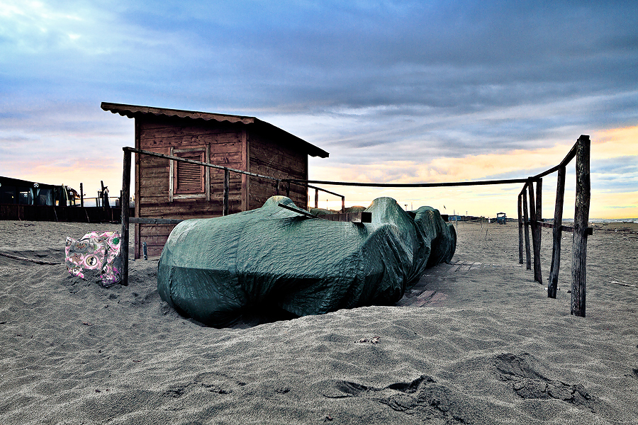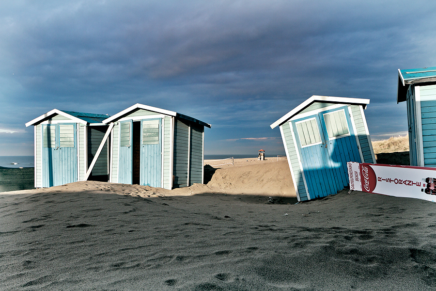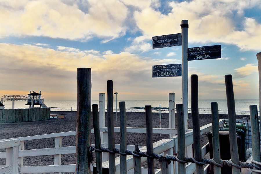 The town of Ostia (Rome, Italy) in winter. Sea landscapes, but not only. Daily life in the cold season, shown silently by the absence of human beings. The crowd that frequents the beach in summer seems to emerge from the inanimate landscapes captured by the lens. Beaches at sunrise, urban views, walks along the wharf and in the port. Without people.