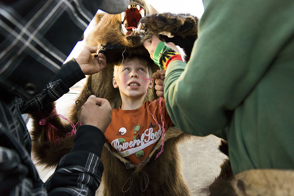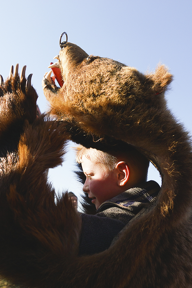 The New Year’s traditions in Romania have some of the finest winter attractions and rich in symbols and meanings. Being fascinated by the idea of masculinity and the representation of men’s power, the bears’ tradition and it’s influence on people’s beliefs inspired to start my project. They evoke death but bestow fertile life. They live in the modern era, but they summon old traditions, accompanied by their Gypsy trainer and a youth beating a tambourine-type instrument, the animals crawl through the crowd. Reaching the centre, they perform a dance until eventually, the bears fall dead on the ground. After their hearts are taken by the trainer, they return to life, theoretically, a more gentle one.