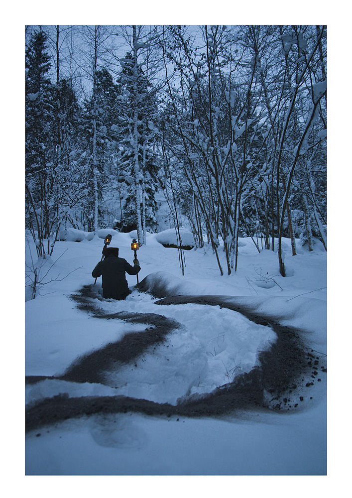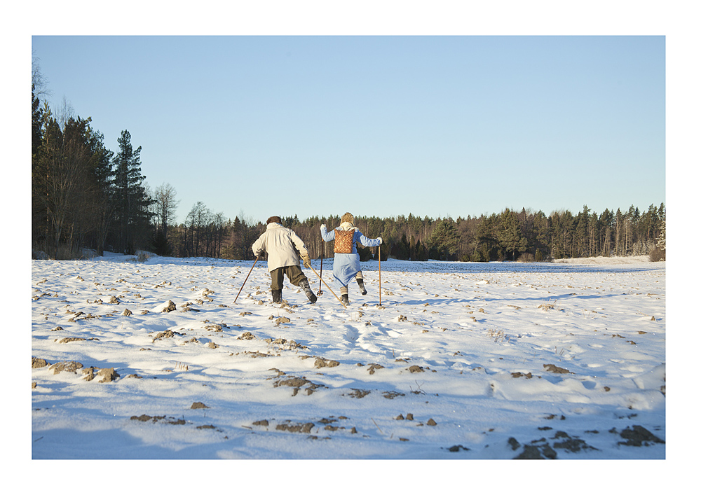 My practice is guided by a post-modernist interest in exploring and questioning the role of photography in society. My work is mainly conceptual, and strongly focused and founded on using images as a tool to explore, analyze, develop and illustrate the structured framework of thought. The on-going Vieraalla maalla (In a Foreign Place) project is induced by experiences of cultural misunderstandings that affect the way we perceive images and the surrounding world. In this fabricated outlandish world traditional Finnish customs and practices have been given a slightly odd twist. Not deviating beyond recognisability for recipients with the relevant cultural knowledge, the scenes toy with proverbs and obsolete customs, rendering the images absurdly strange to a viewer unfamiliar with the cultural heritage. Drawing from personal experiences of cultural alienation and misunderstandings, and my Carelian origin, the work invites the recipients to strive to decipher and locate the depicted world, thereby denoting the arbitrary nature of our interpretations so easily taken for granted.