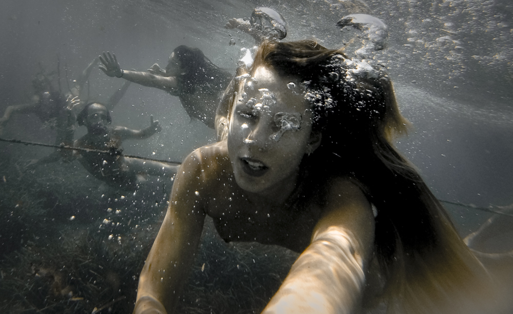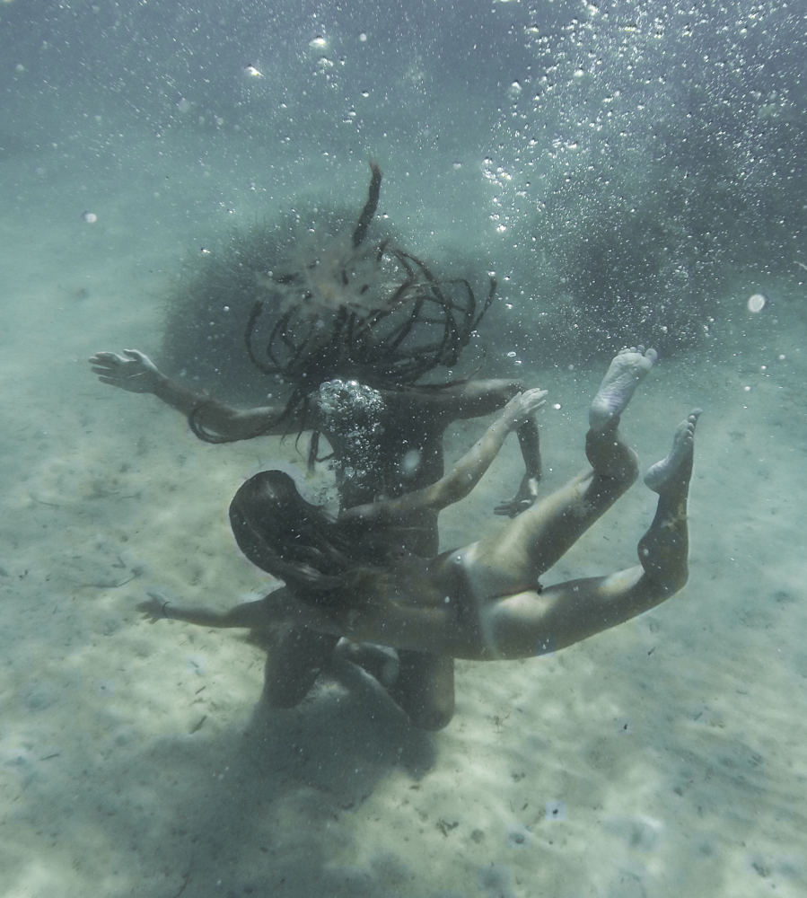This work is the second part of my project "LA ISLA" (2010-2013) where the island is an archetypal site and a place in which man is free to give life to new utopias of regeneration. In "Mitos Submarinos" I tried to find a different perspective to represent a possible return to a life surrounded by nature in an aquatic limbo representing a return to our origins. I was inspired by the classics paintings (The Pre-Raphaelite authors) until the modern comic.