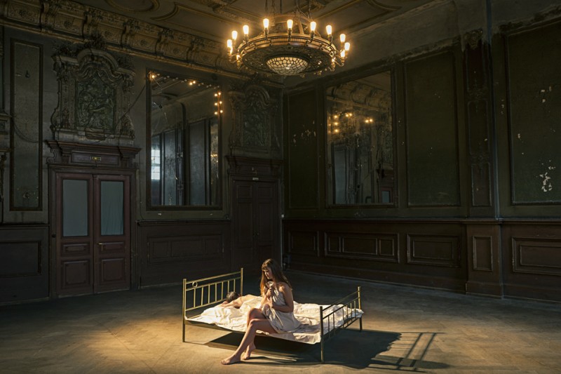 Berlin bhf. (2014.) Berlin bhf. (Bahnhof) is a staged photography series that was inspired by Hungarian authors' Berlin experiences. I am founding my concepts on intimate issues of my personal life, through which I could emphasize Berlin being a transitory state, as a habitat of the passengers, the temporary home for these authors. The scenes take place in different interiors, and show feelings and relations through the transition. I’m interested in the dialogue between photography and texts, since Berlin plays not only a self-reflection but a dialogue in these pieces. The texts are inspirational and rather give a common atmosphere for all images then illustrate one photograph. Through my visually coherent series I wanted to emphasize the common aspect of rootlessness and alienation, the permanent feeling of outcast and the desire of being integrated.