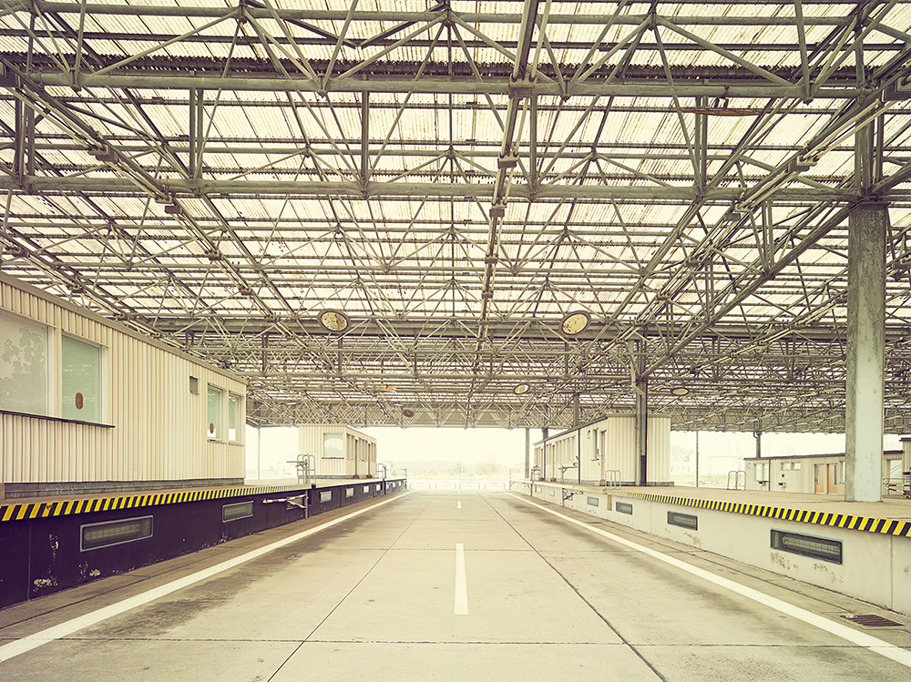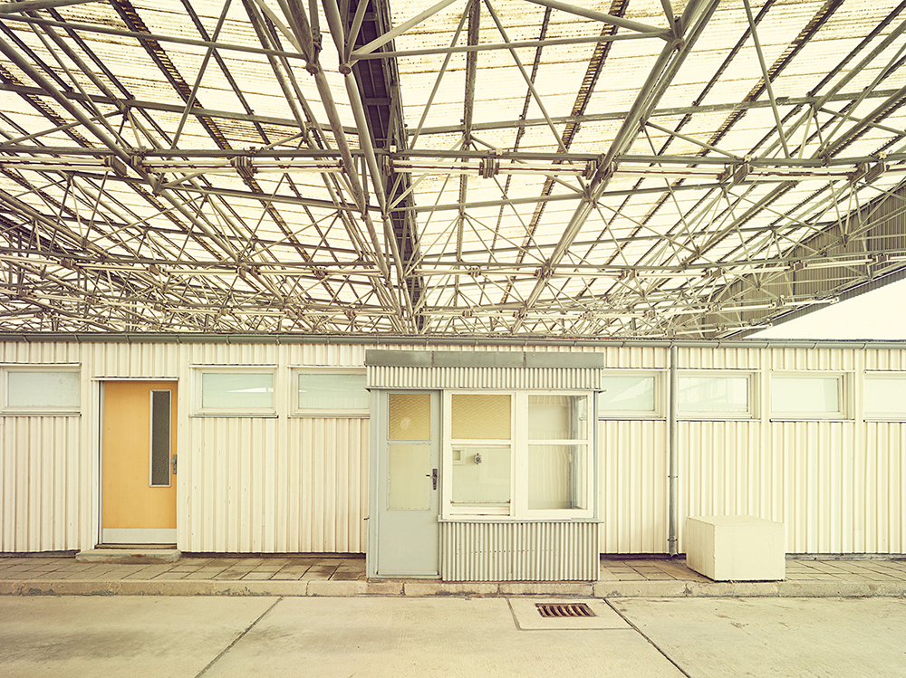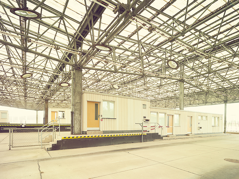 The checkpoint Helmstedt–Marienborn was the largest and most important border crossing on the Inner German border during the division of Germany. The frontier between the German Democratic Republic (GDR, East Germany) and the Federal Republic of Germany (FRG, West Germany) from 1949 to 1990 ran 1,393 kilometres (866 mi) from the Baltic Sea to the Czech Republic (then Czechoslovakia). The pictures show the checkpoint more than 20 years after the German reunification, unnecessary and almost hidden from the traveller‘s view besides the Autobahn A2 from Hannover to Berlin, fading away like the remininiscence of long hours waiting in line to be checked by fellow countrymen. Â