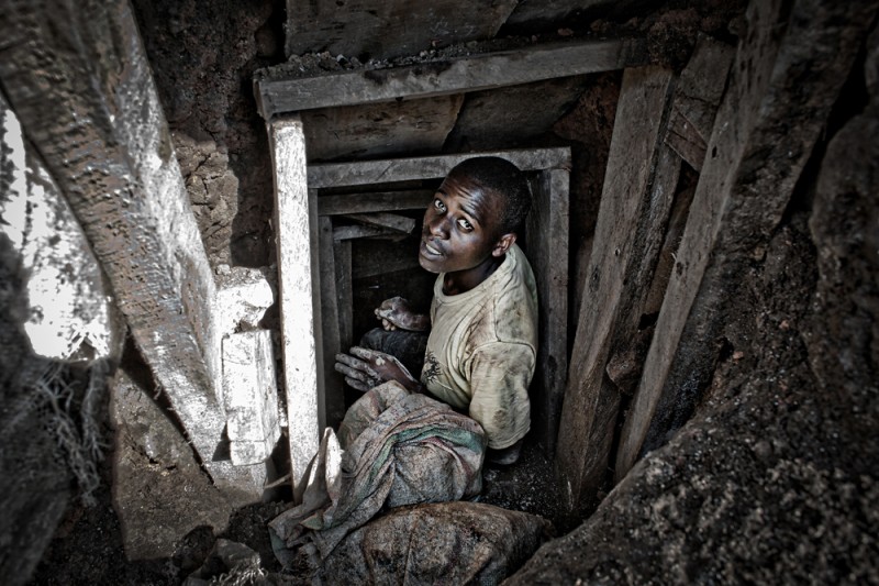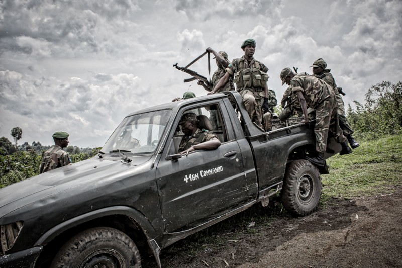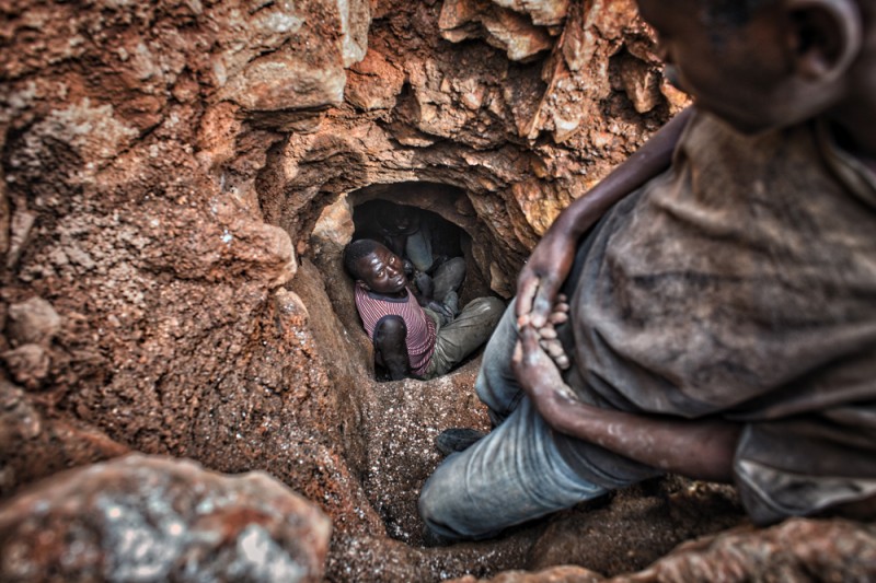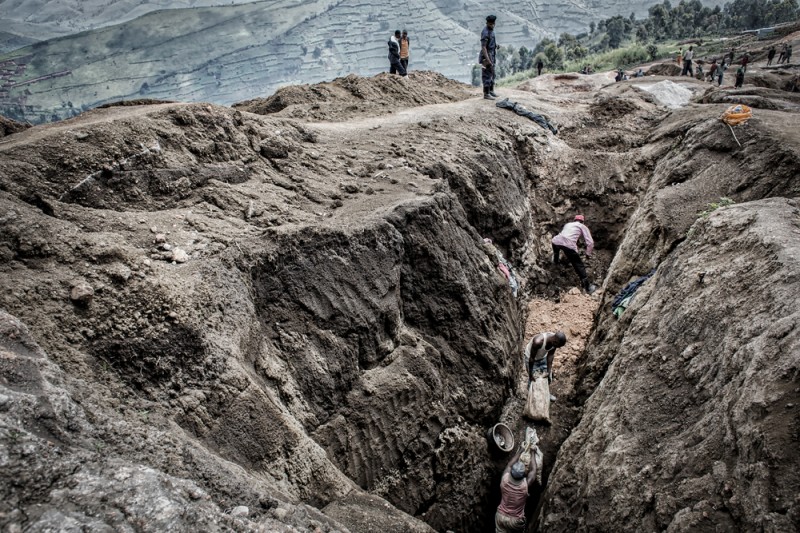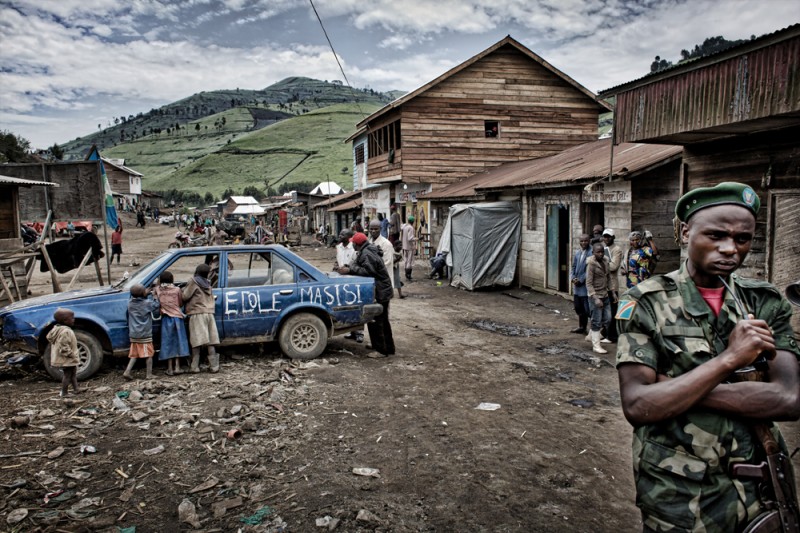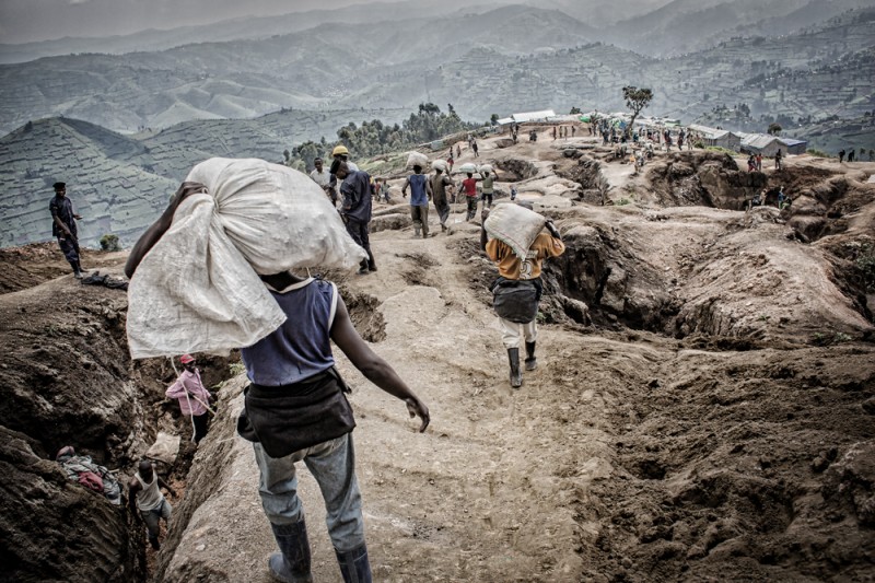 Republic Democratic of Congo, North Kivu, Masisi, Rubaya. Coltan and manganese, are rare metals used to make mobile phones and computers. The market value is so high as to have aroused the interest of multinational corporations and criminal organizations: in order to destabilize the political situation and take control of the mining business at a reasonable price, financial backing is given to armed groups waging war on one another. Under the supervision of the buyers in Rwanda, soldiers and police control the territory, exploiting the local population and reselling its natural resources: the proceeds are used to buy other weapons that provide additional power, thus creating a vicious circle it is difficult to break. The armed rebel movement of the Nyatura was formed by the secession, in 2010, of the CNDP rebel movement, now called M23. Formed mostly by Congolese Hutu, they are led by Colonel Marcel Habarugira. Today some of these rebels have been reintegrated into the regular Congolese army F.A.R.D.C. Without any form of salary, they survive by bullying. through abuse of power, abuse of civilians, raiding night and day and demanding a 10% tax on all forms of activity in the city of Rubaya. Nyatura soldiers patrol the territory around the Mudere mine. Miners dig 20 meters underground for the minerals before transporting them to a nearby river where they are separated from rocks and sand before being sold to dealers. Mine accidents are commons.